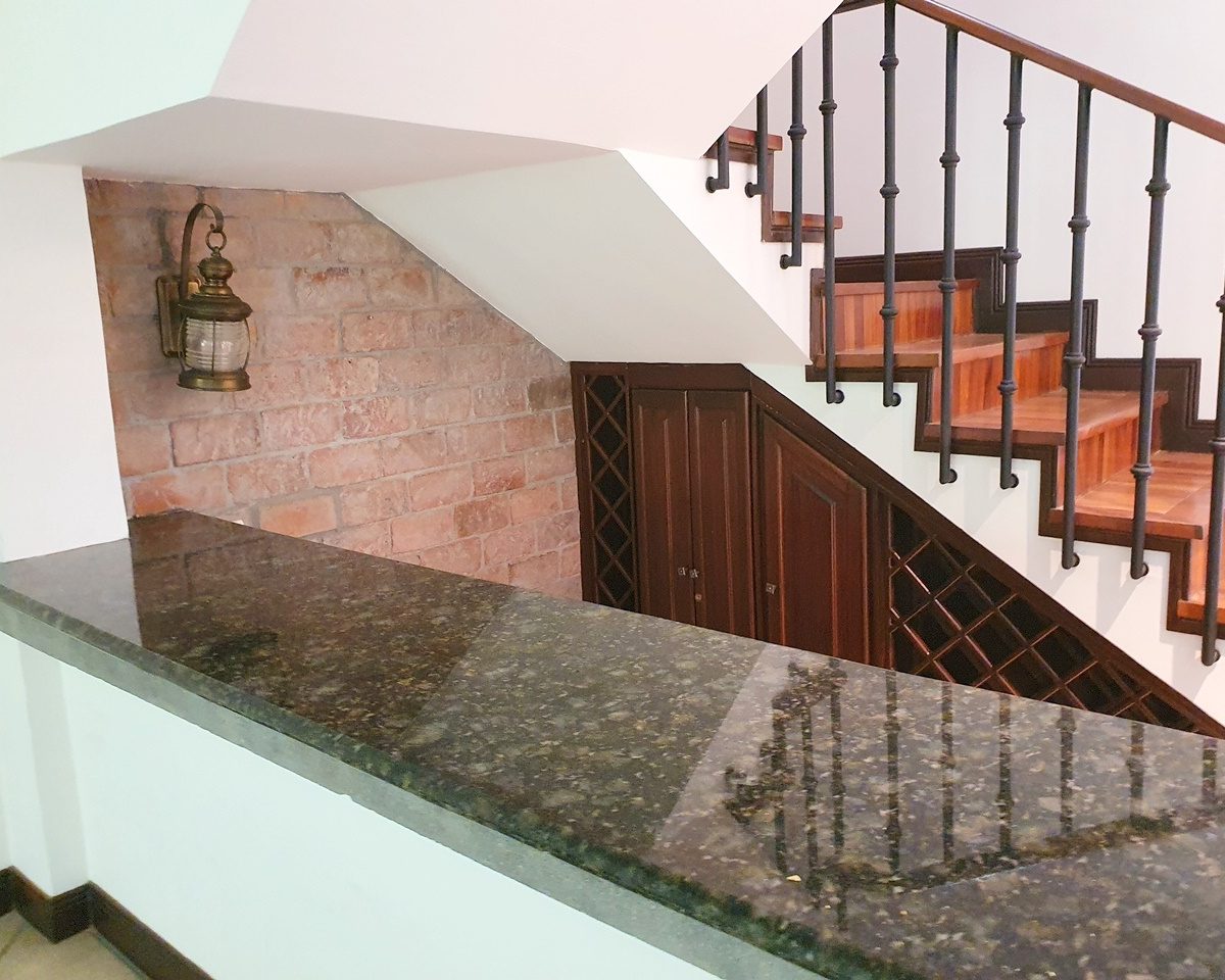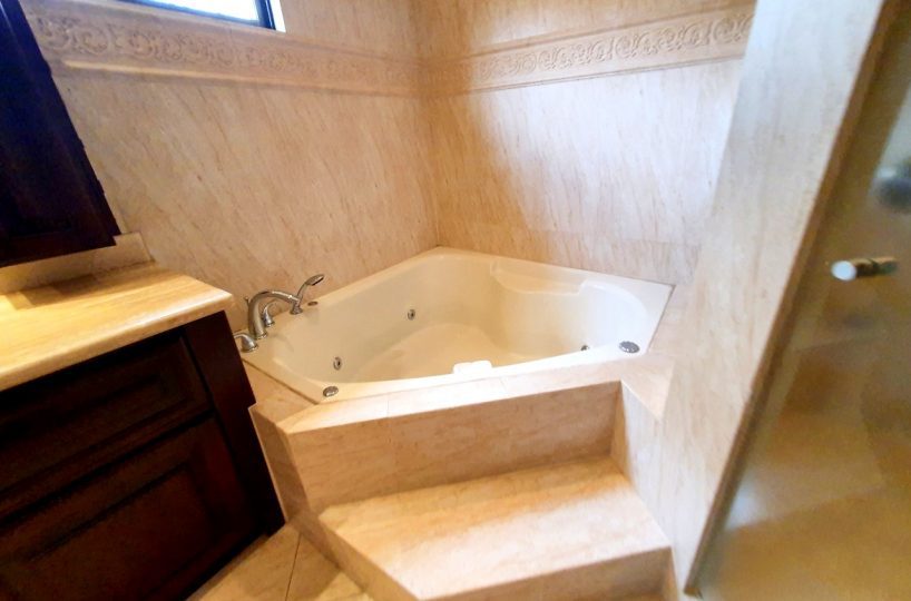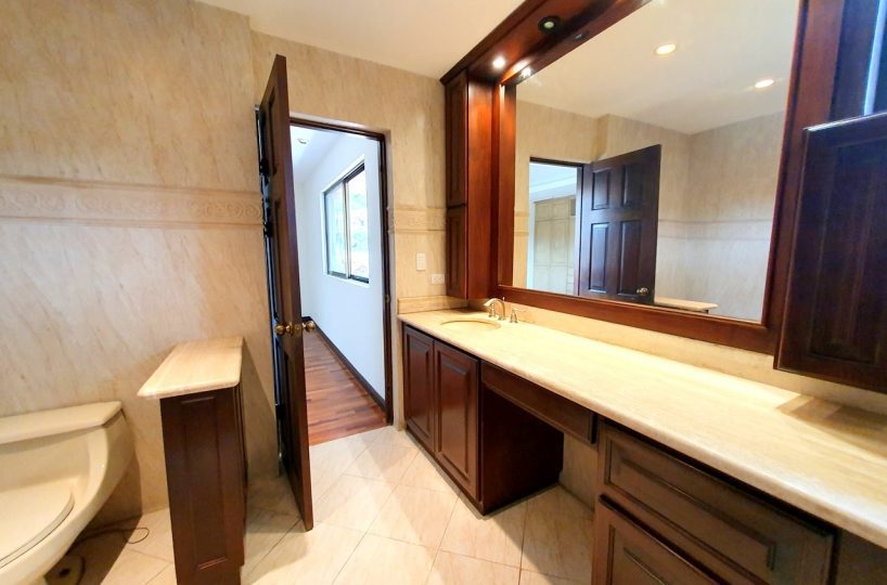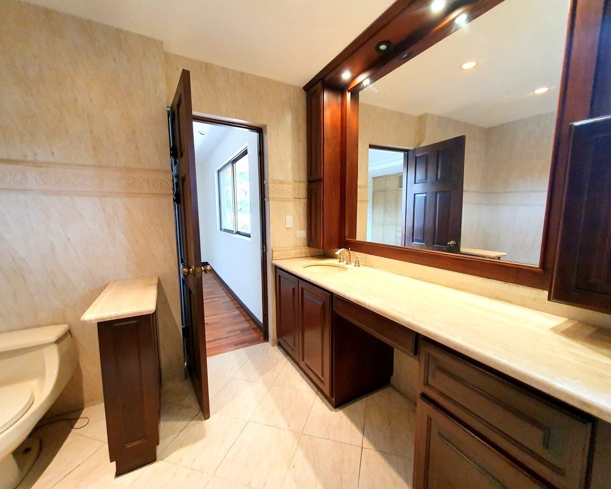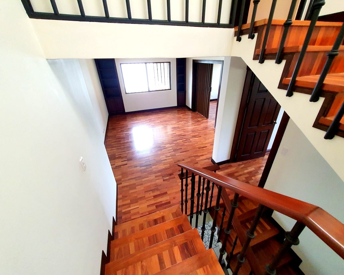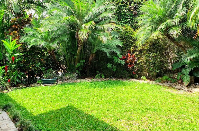 It is a 2 story house in a condominium CLOSE TO EVERYTHING! 467m2 of lot and 370m2 of construction.     Especially different from the rest of the houses in the condominium.    It has 3 bedrooms, 2.5 bathrooms.  Underground living room that could be a 4th bedroom or a game room etc. – Very spacious dining room with a beautiful terrace and a nice garden.