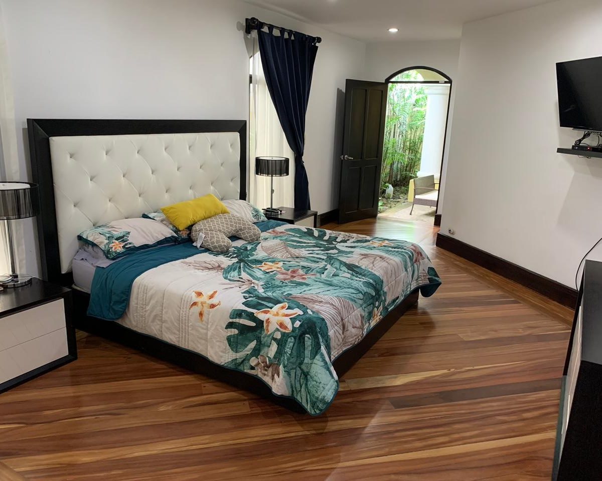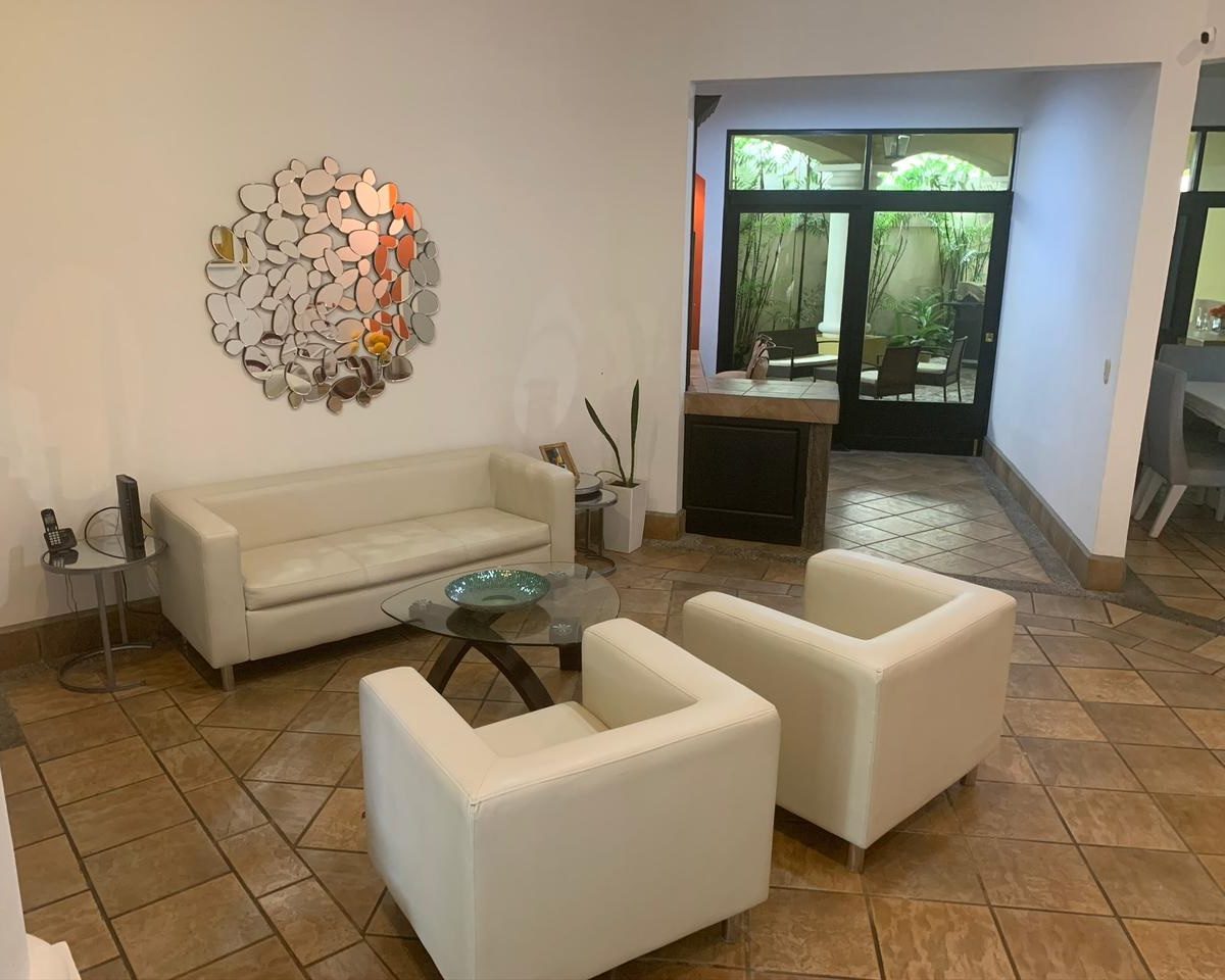 Detached home, recently remodeled, with almond wood and ceramic floors, alarm and electrified fence. It is located in a luxury residential area 2 minutes from the Cariari Golf & Tennis Club and all the comforts and amenities, in a privileged, quiet and safe area. The residential has 24/7 security.