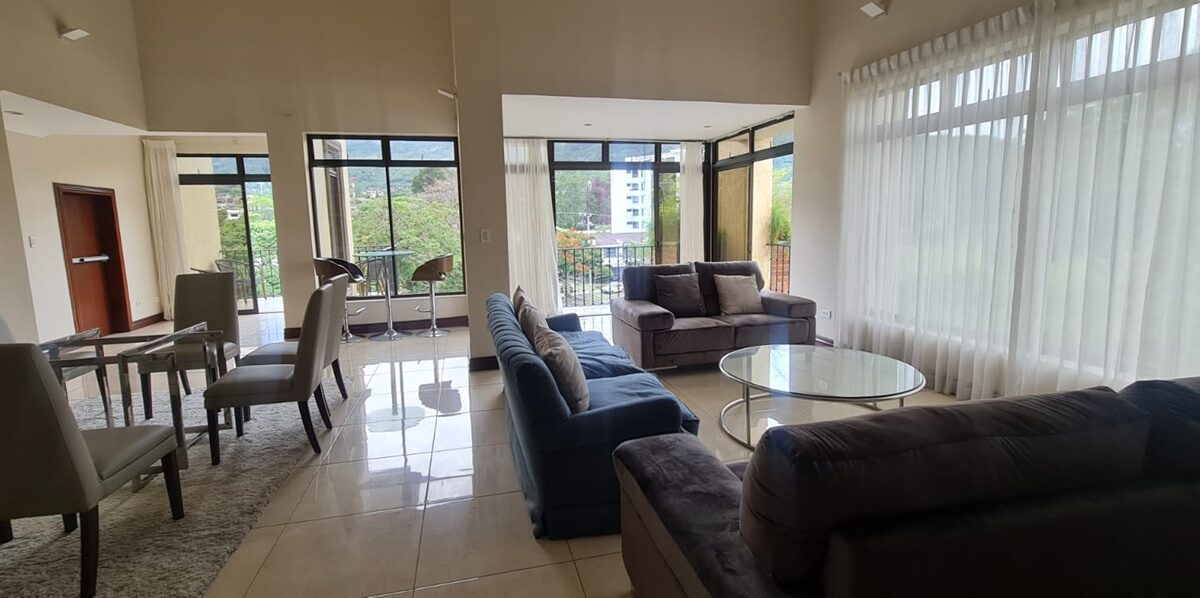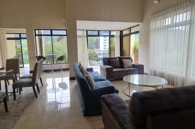Spacious and elegant 2-story apartment with a construction area of ​​350m2. It is located on the fifth floor of a luxury housing complex in the vicinity of the Costa Rica Country Club in Escazú, close to all amenities and services, in a quiet and safe area.