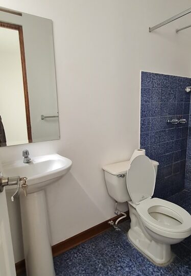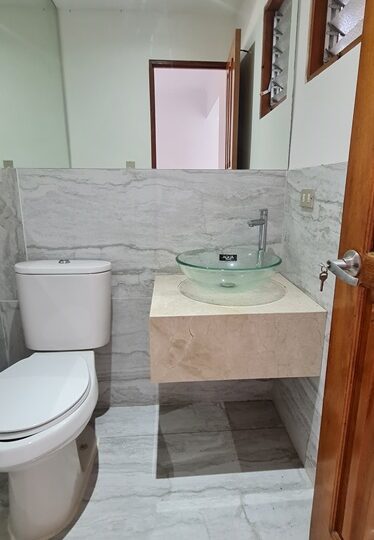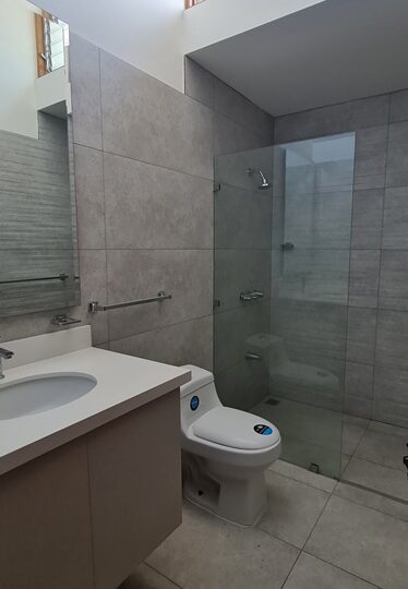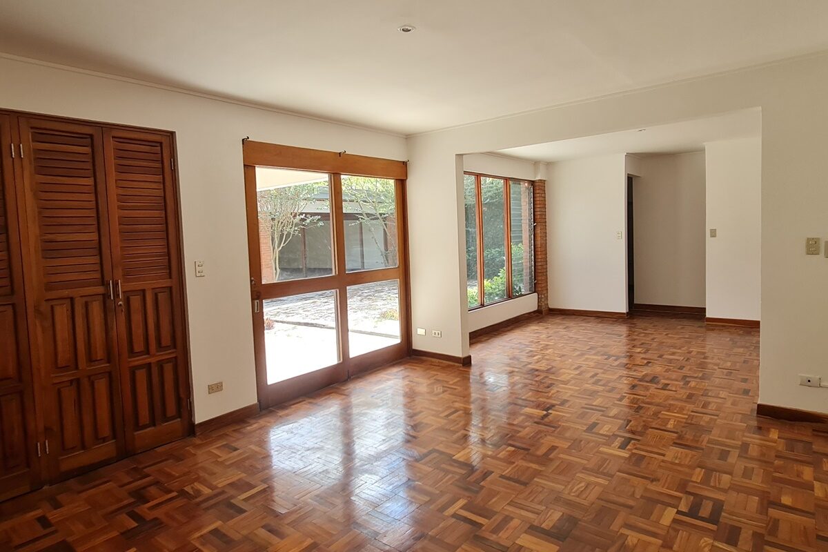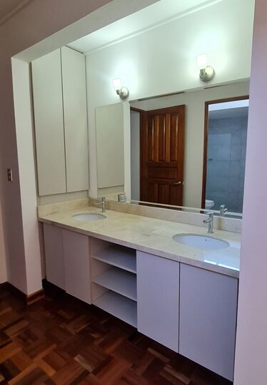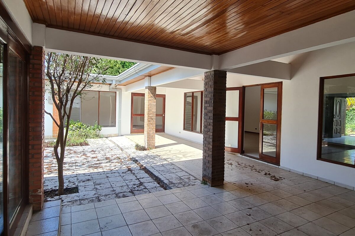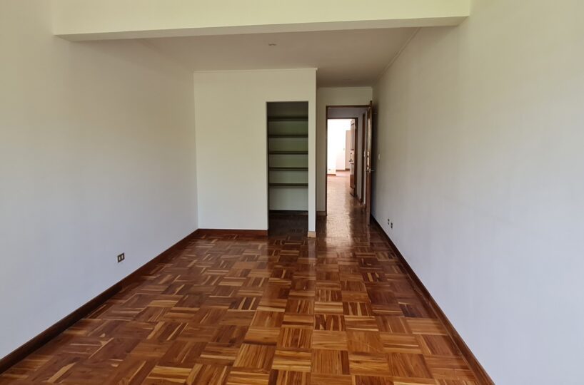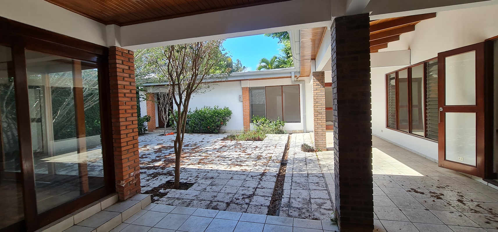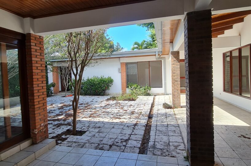 It is on one floor with: 3 bedrooms, master with its own bathroom. 2 walking clostes and has access to and views of a central patio.