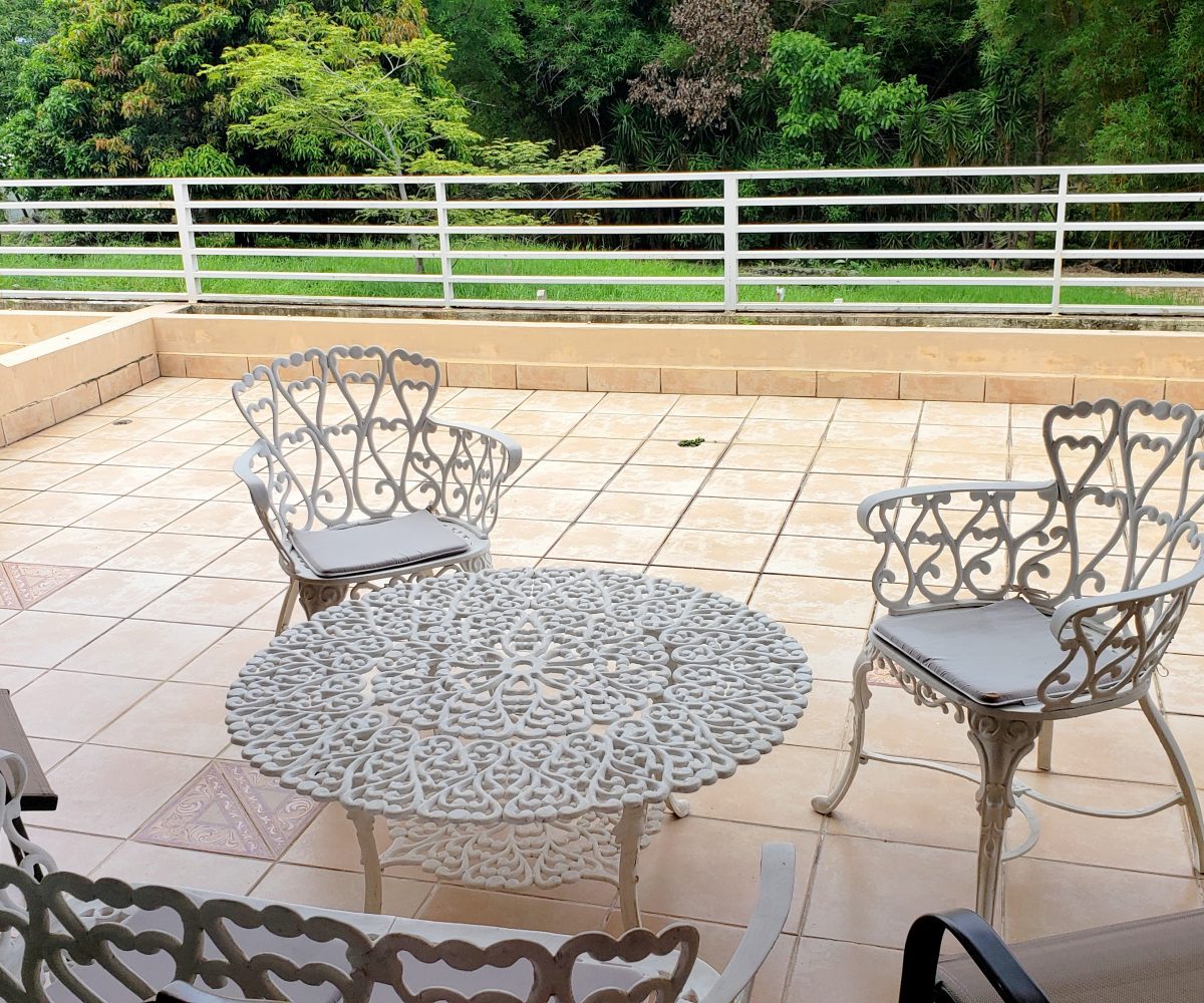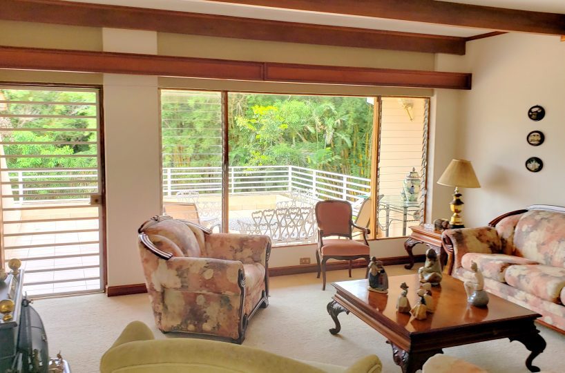 It has a large and clear social area and terrace overlooking a beautiful grove, kitchen with breakfast area and granite counters with access to a patio, laundry area and maid’s quarters. It also has 4 comfortable bedrooms and 3.5 bathrooms as well as a T.V. room, under roof parking for two cars and parking space for 2 more, pool and BBQ ranch. The residential has 24/7 security.