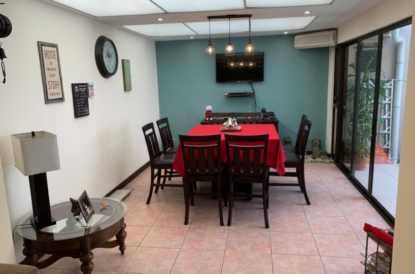 248m2 land with a beautiful house of 248m2 of construction optimally distributed on two floors plus an attic, luxury finishes, A / C on the terrace, social area and bedrooms, curtains and blackouts, hot water tank. The property is located within a residential complex in Guachipelín de Escazú, close to all the amenities, amenities and services, in a quiet and safe place. The condominium has 24/7 security, and beautiful common areas with BBQ ranch, swimming pool and playground area for kids. The house features: