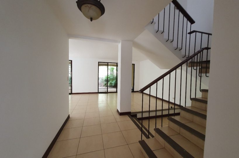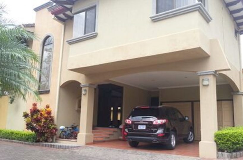 Description: Beautiful house located within a condominium of only 6 units in Guachipelín de Escazú, close to all amenities and services. The property has a land area of 472m2 and 370m2 of construction optimally distributed over two floors. The house has a wide and clear social area with a beautiful terrace and bar area with access to a large garden, guest bathroom; kitchen with furniture and granite countertops with breakfast bar, pantry, laundry area, maid´s quarters and indoor parking for two cars, office. It also has 4 comfortable bedrooms, the master with walk in closet and large bathroom with Jacuzzi, three secondary bedrooms and two additional bathrooms, T.V. room. The condo features 24/7 security.