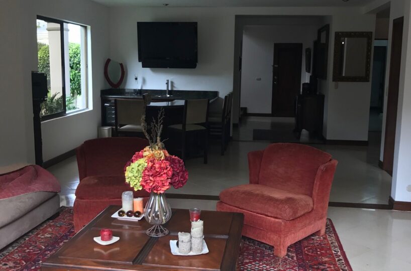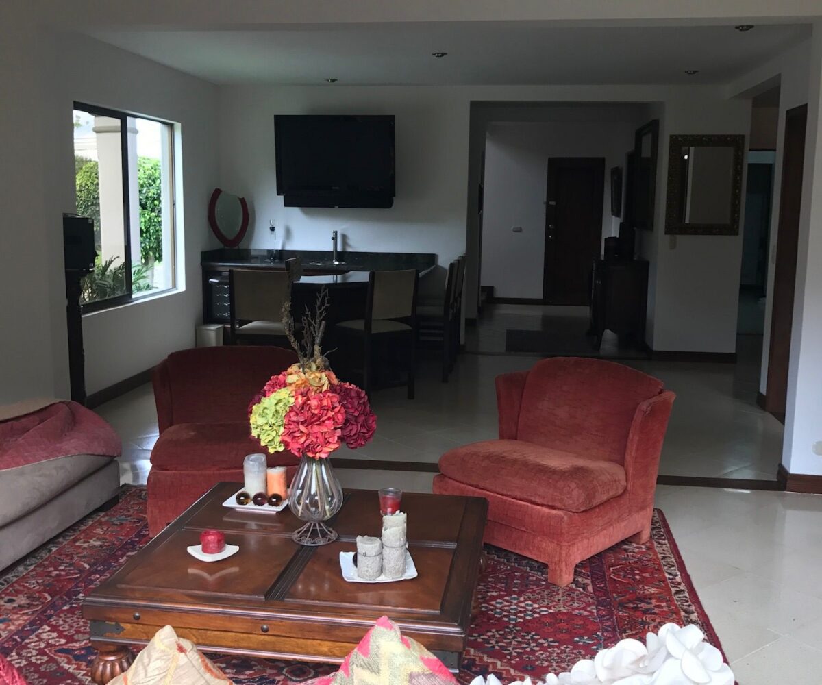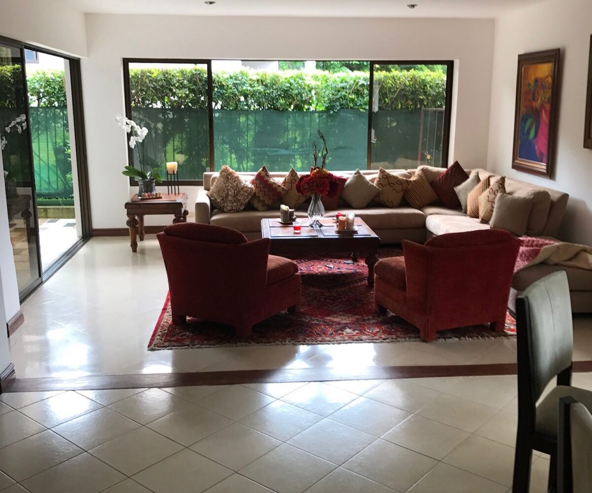 Beautiful house located within a luxury housing complex in Guachipelin, Escazu, in a safe and quiet area, close to all services and amenities. The complex has 24/7 security with controlled access, a clubhouse, swimming pools and multipurpose courts, among others.