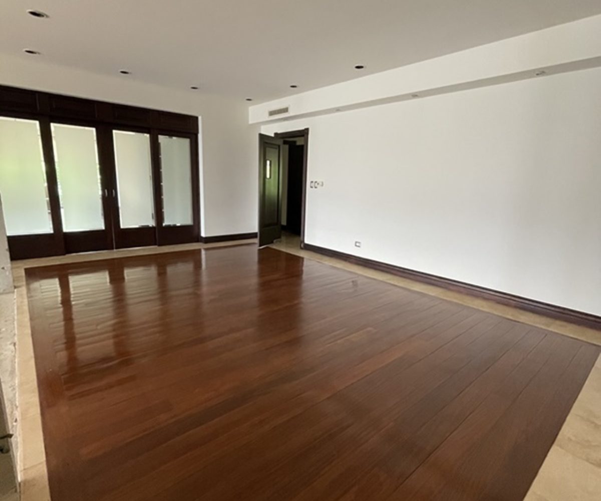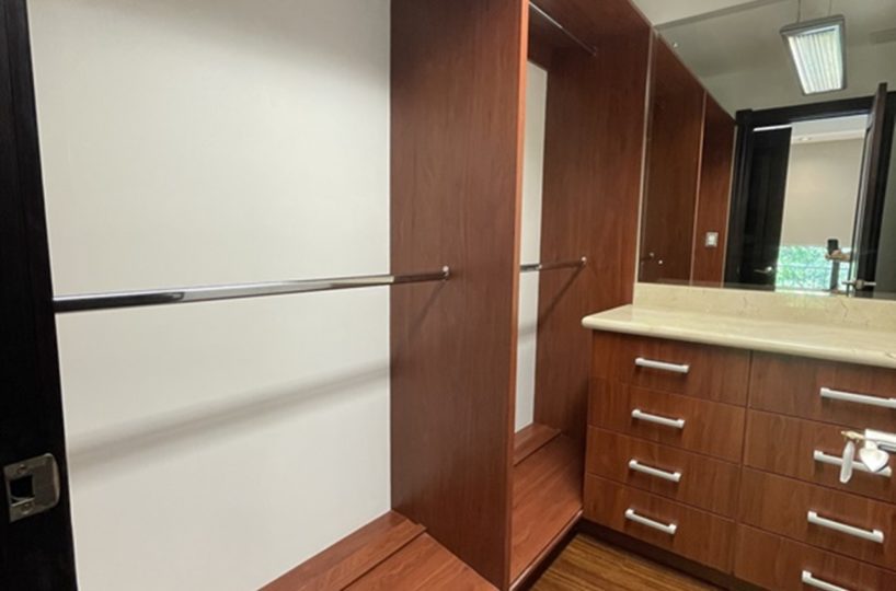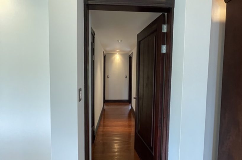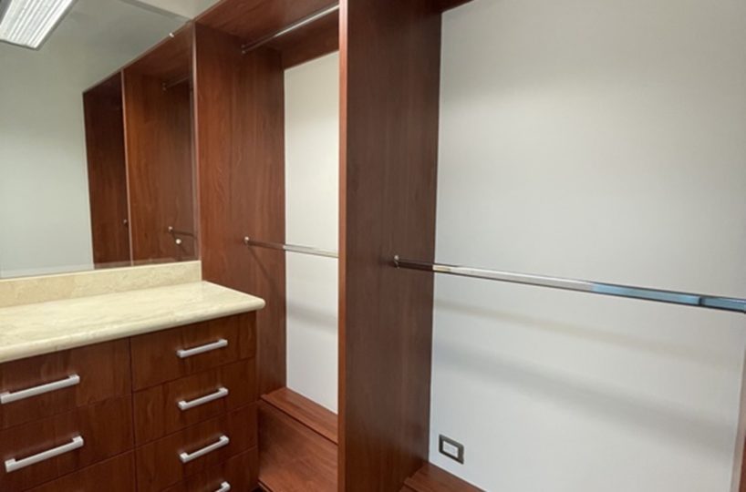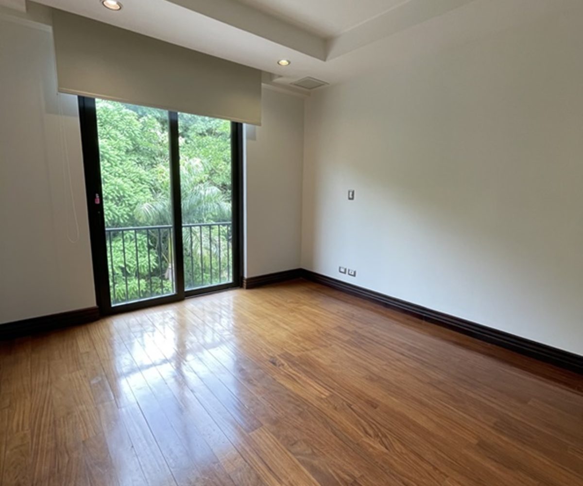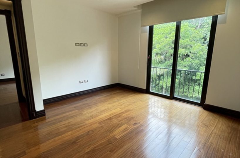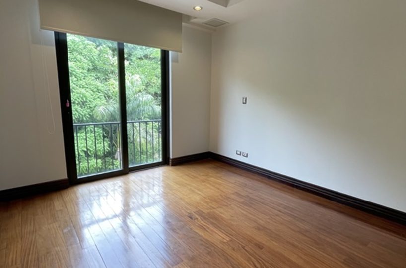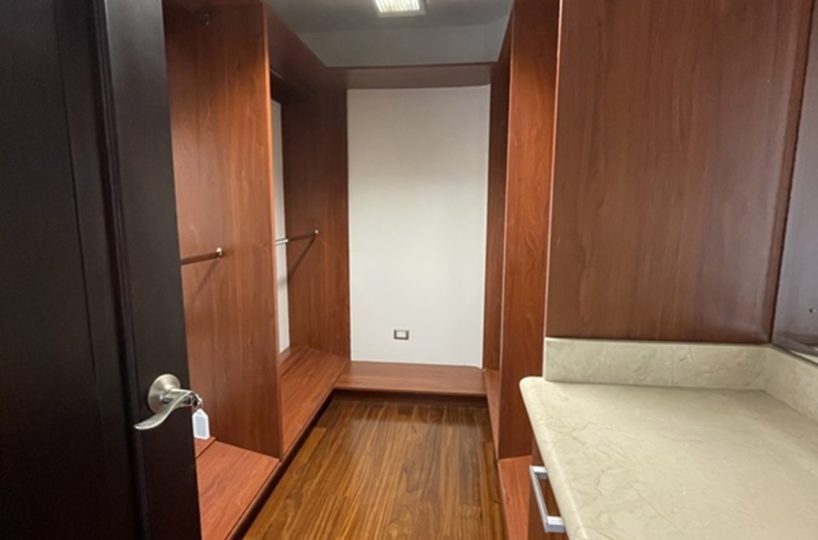 The apartment is located on a fourth level of the building, where residents may access through a key-operated elevator for more privacy. Before entering the apartment is located a powder room, independent from the social area. An ample salon for the living and dining room is located at the entrance which is divided by a decorative wall. The two living rooms in this area have panoramic views of the city and the far mountains of Heredia. In one of the living rooms is a barroom and an office. Finishes throughout the unit include hardwood and marble floors, porcelain veneers, laminate floors, wooden doors, skirting boards, and PVC windows frames. Next to the dining room is a private and spacious kitchen, of course a view of the forests! The kitchen is connected also to the laundry room, maid’s quarter with bathroom, and an emergency exit. Divided by doors, next to the dining area is located a TV room-also with doors that open wide open toward a city and forest views. From the TV room on one side is the master bedroom with a walk-in closet and a private bathroom with a double sink and marble countertops. On the opposite side are located two secondary bedrooms, each with an in suite bathroom, walk-in closet, and view to a natural protected area! All the unit has central A/C, two underground parking spaces, two additional in front of the lobby, visitors’ parking area and storage. The complex has CCTV, two elevators, an emergency power plant, and a fire sprinkle system. Separated from the building is located a relaxing pool with a bar area and a terrace-perfect for enjoying the sun or just relax. RENT: $5.500 + I.V.A. / SALE: $1.000.000