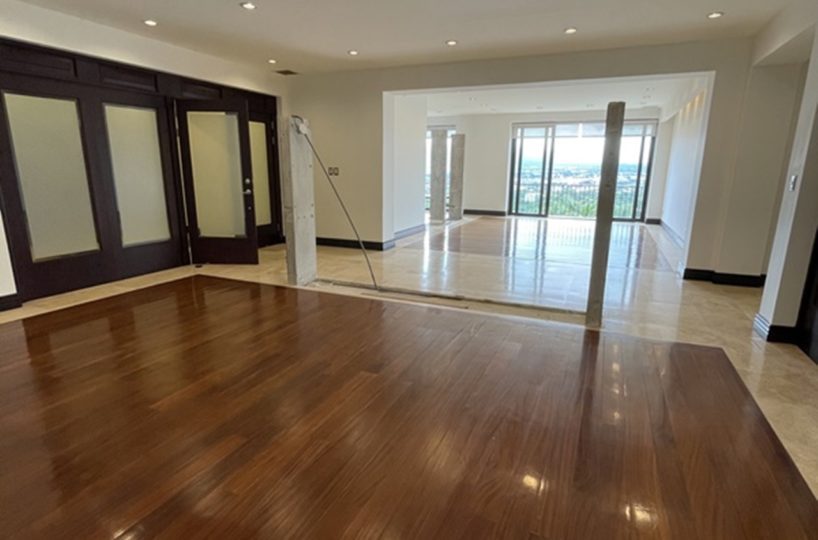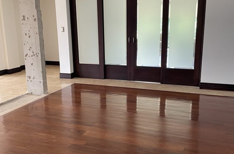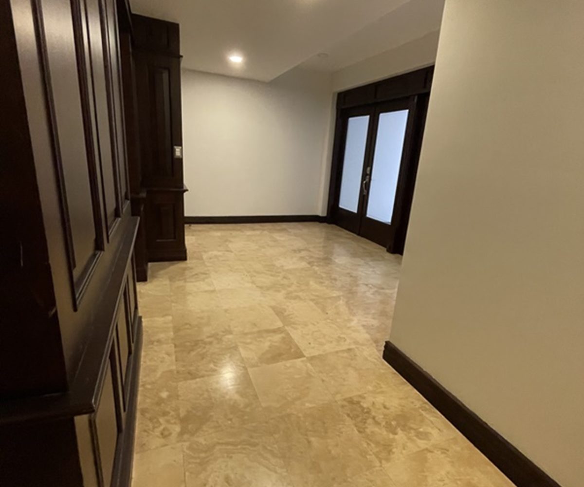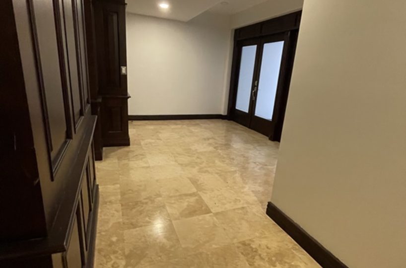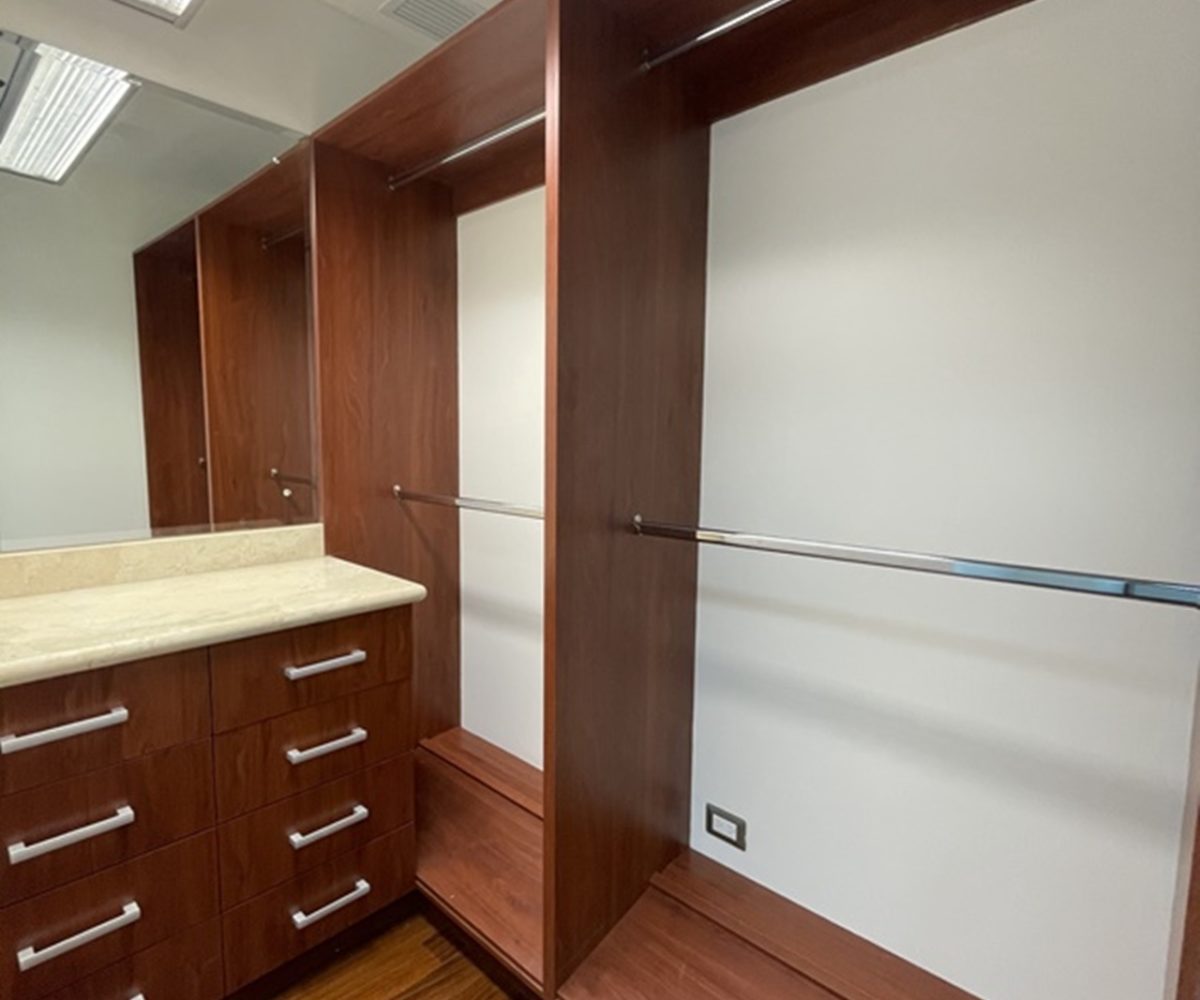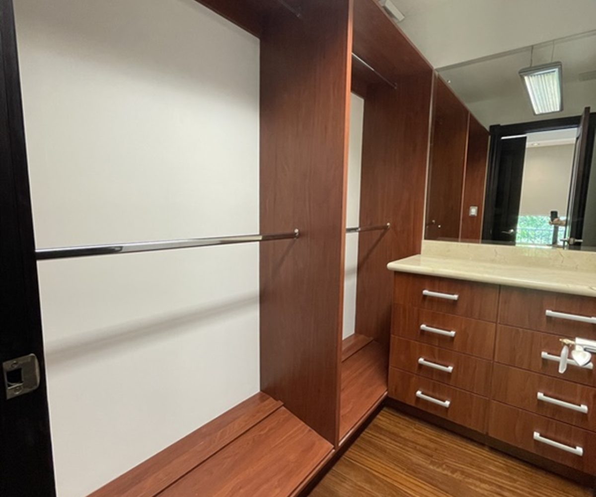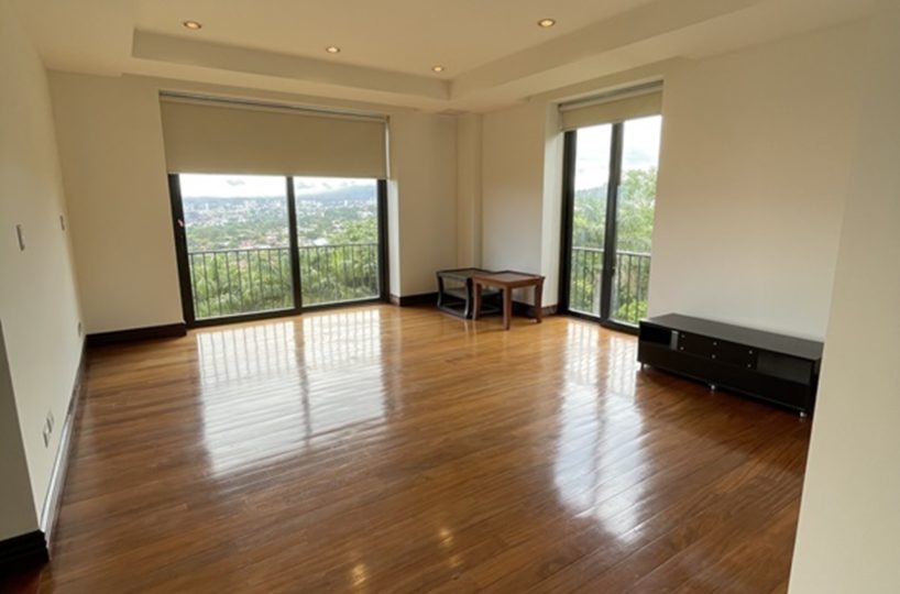 The apartment is located on a fourth level of the building, where residents may access through a key-operated elevator for more privacy. Before entering the apartment is located a powder room, independent from the social area. An ample salon for the living and dining room is located at the entrance which is divided by a decorative wall. The two living rooms in this area have panoramic views of the city and the far mountains of Heredia. In one of the living rooms is a barroom and an office. Finishes throughout the unit include hardwood and marble floors, porcelain veneers, laminate floors, wooden doors, skirting boards, and PVC windows frames. Next to the dining room is a private and spacious kitchen, of course a view of the forests! The kitchen is connected also to the laundry room, maid’s quarter with bathroom, and an emergency exit. Divided by doors, next to the dining area is located a TV room-also with doors that open wide open toward a city and forest views. From the TV room on one side is the master bedroom with a walk-in closet and a private bathroom with a double sink and marble countertops. On the opposite side are located two secondary bedrooms, each with an in suite bathroom, walk-in closet, and view to a natural protected area! All the unit has central A/C, two underground parking spaces, two additional in front of the lobby, visitors’ parking area and storage. The complex has CCTV, two elevators, an emergency power plant, and a fire sprinkle system. Separated from the building is located a relaxing pool with a bar area and a terrace-perfect for enjoying the sun or just relax. RENT: $5.500 + I.V.A. / SALE: $1.000.000