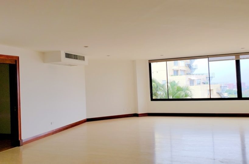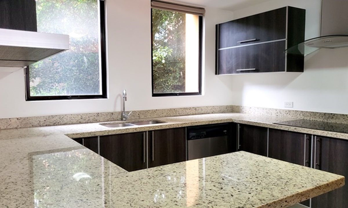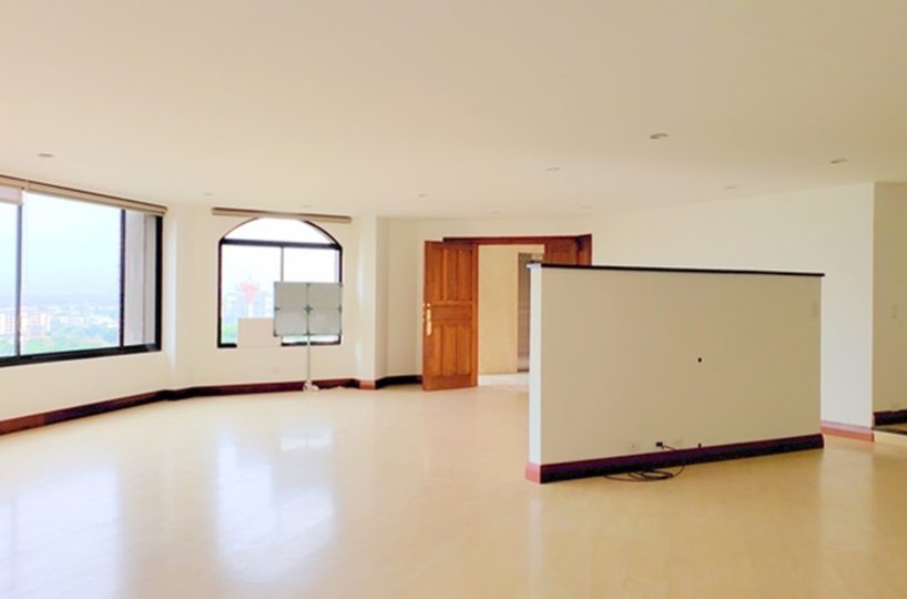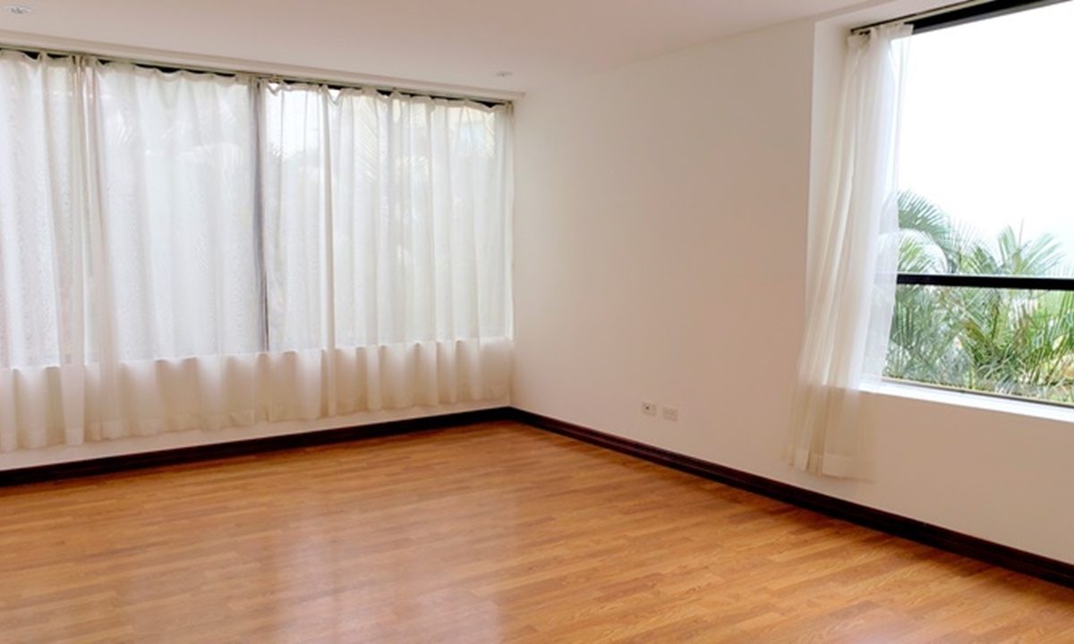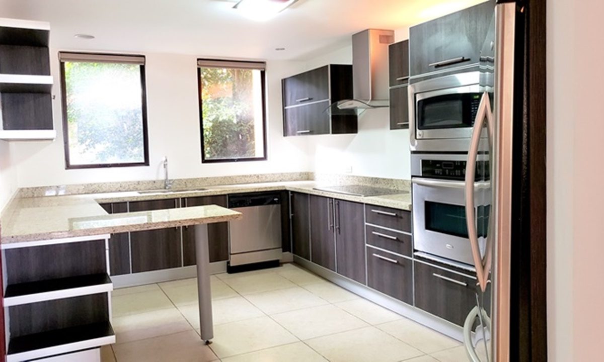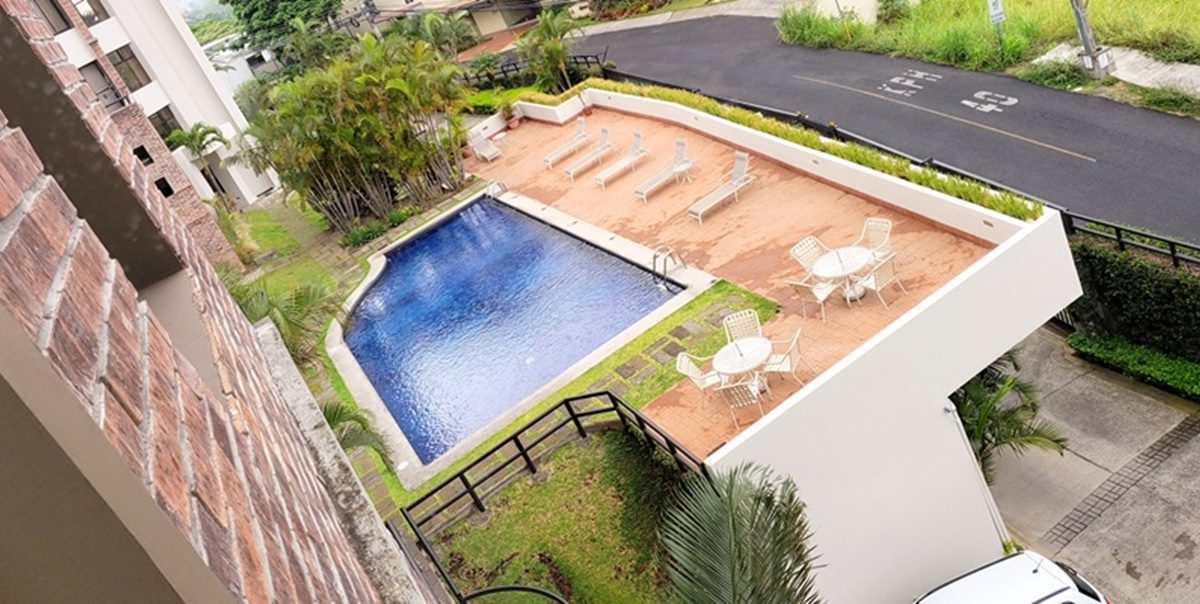 Exclusive 320m2 apartment in a residential building located near La Paco in San Rafael de Escazu. It features a large dining room with an impressive view, a kitchen with luxury appliances, a guest bathroom, T.V. room and office, laundry area and maids quarters. It also offers 2 comfortable and cozy bedrooms, both with walk in closet and 2 bathrooms. There is the possibility of building a third bedroom. It has indoor parking for two cars and a cellar. The condominium offers proximity to all the amenities and services, 24/7 security, a ranch with a BBQ area, swimming pool and playground for children, as well as beautiful common green areas.
