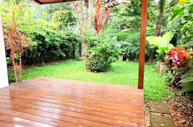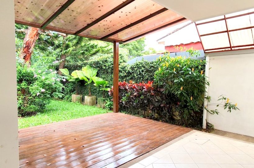 Beautiful house for sale located within a 4-unit housing complex in Jaboncillos,  Escazú, a quiet and safe residential area near bus stops, shopping centers, schools, supermarkets, health services, among others.The house has a construction area of ​​188m2 on one floor, optimally distributed for greater use of space. It has a large social area and kitchen with cabinets and a large terrace that gives access to an immaculate garden. It also has a laundry area, maid´s quarters and 2 car garage. Additionally, it offers 3 comfortable bedrooms and 2 full bathrooms. This beautiful house has been recently remodeled with high quality materials and finishes, and due to its design it presents fabulous natural lighting and ventilation. SALE PRICE: $220.000