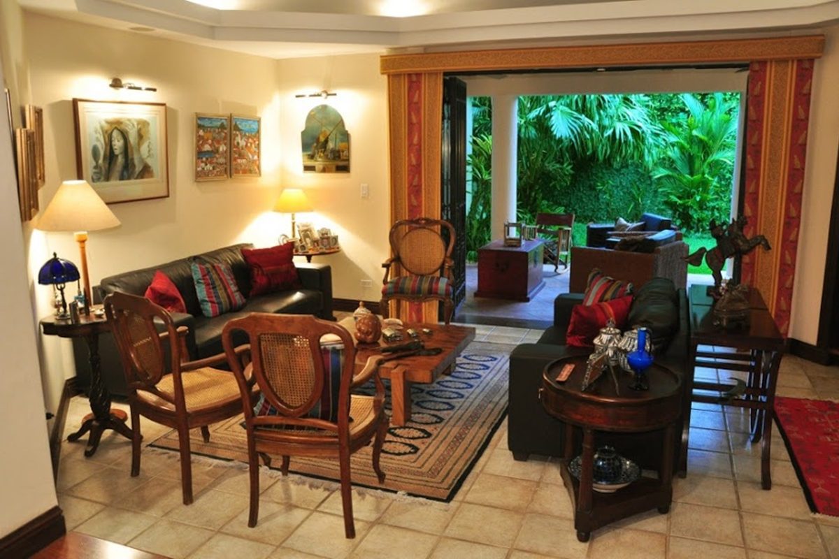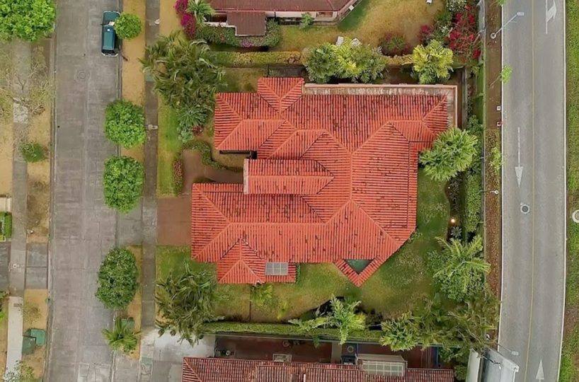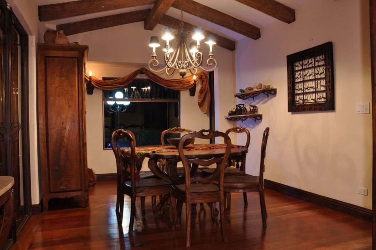 A beautiful entrance lobby gives access to the spacious house, which due to its large windows with a wrought iron structure, makes it fresh and with plenty of natural light. The social area has a formal hexagonal room with a cupola, a dining room with almond wood floor and exposed wooden beams and a large terrace with fans, open to the beautiful tropical garden that has an irrigation system. Additionally, it has a guest bathroom and a spacious kitchen with a dining area and furniture with granite countertops, maid´s quarters, a laundry area with a covered drying rack and a garage for 2 cars and space for 2 extra. It has a family TV room and three comfortable bedrooms. The master with air conditioning, two walk-in closets and a large bathroom with a separate toilet as well as a library and office area. The two secondary bedrooms have closets and share a bathroom.