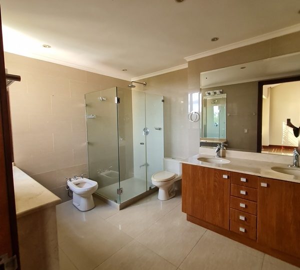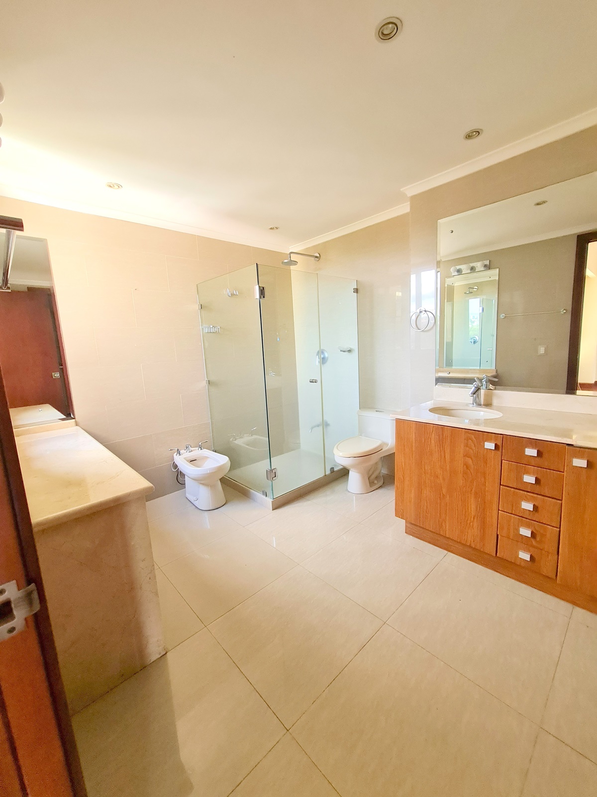 On the first floor there is an elegant lobby, 2 large bedrooms, each with bathroom and walk in closet, guest bathroom, large dining room, family room and another space for distribution between rooms, kitchen with dining room with fine wooden furniture and granite countertops and a cupboard. In addition, room and bathroom service, spacious laundry room with hanging area.