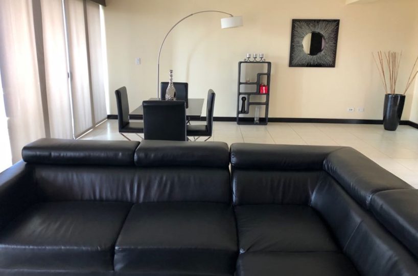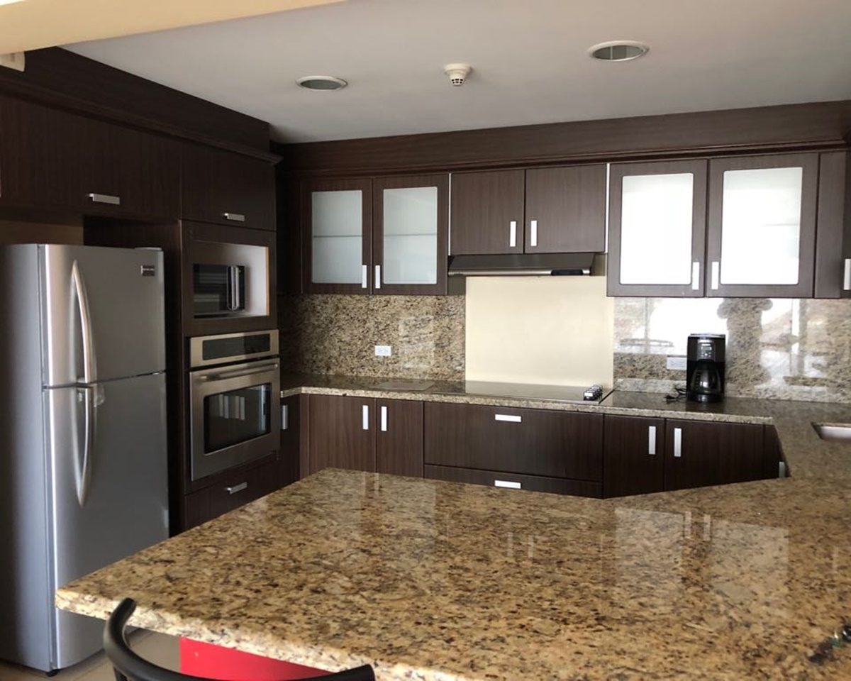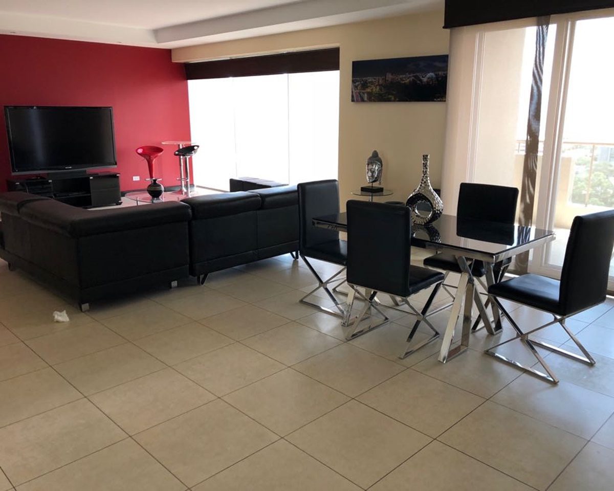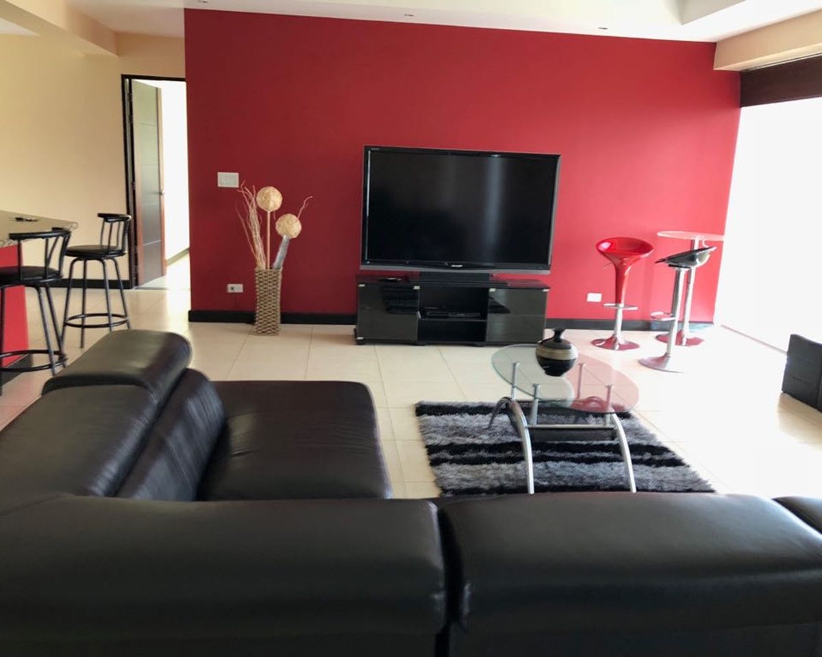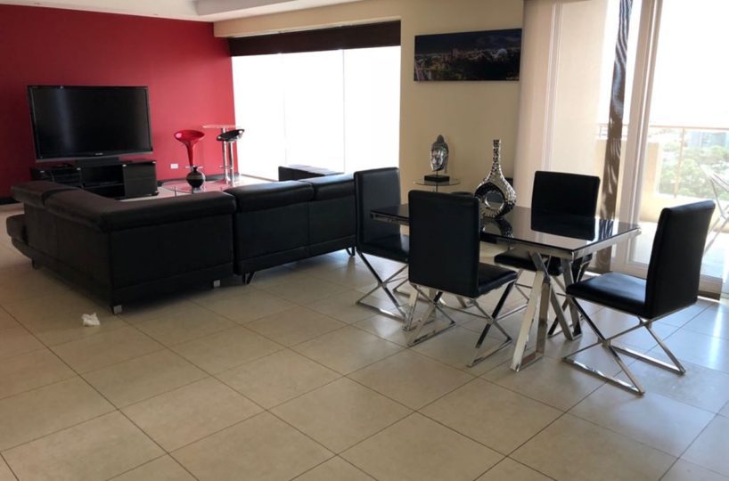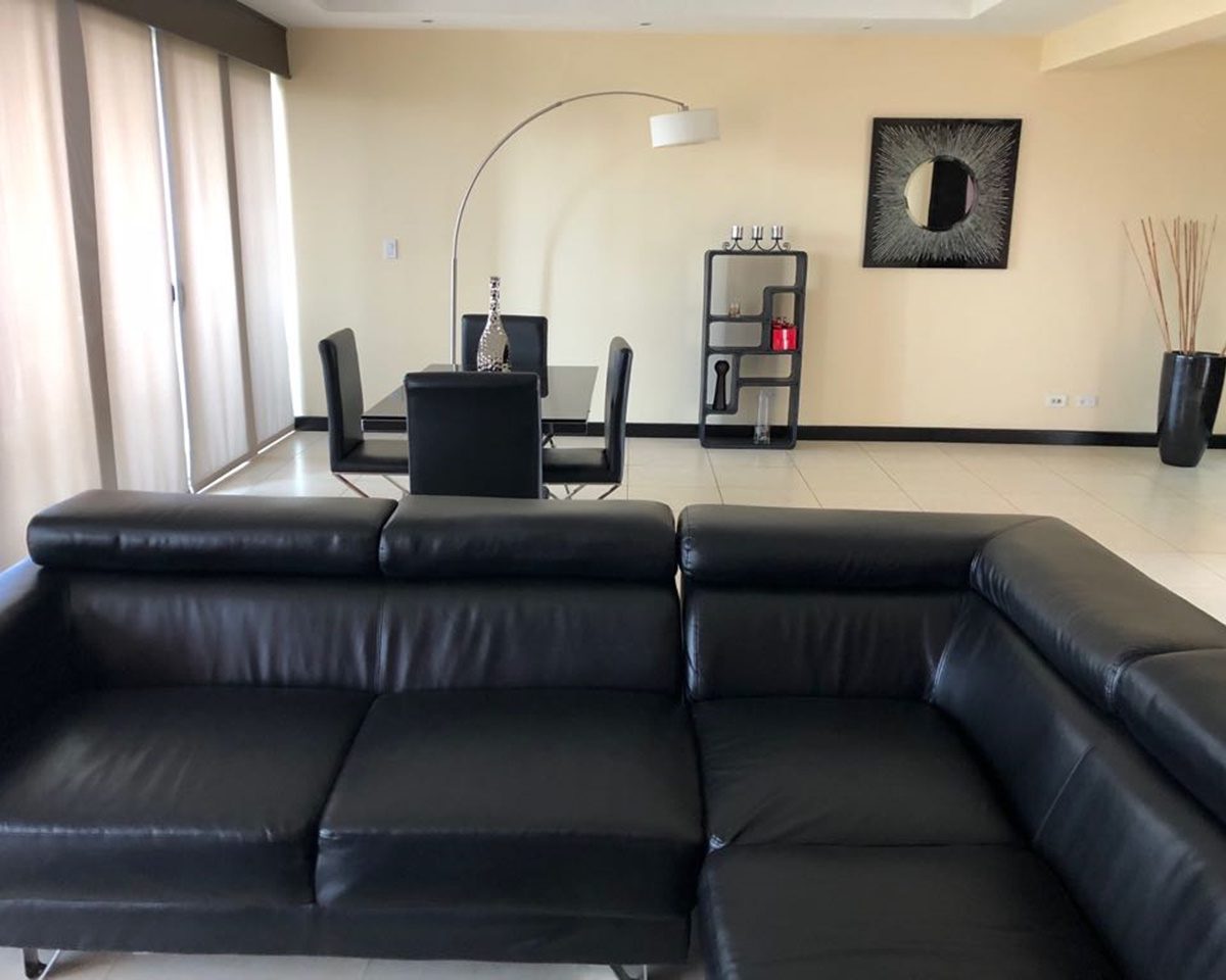 Beautiful apartment completely furnished with an exquisite taste, fine finishes and all the comfort. This apartment is within a first class housing complex in the vicinity of La Sabana, and its location on the 14th floor of the building, allows you to have stunning views. Close to all services and amenities, such as hospitals and medical services, supermarkets, pharmacies, restaurants, banks, schools and access from major roads. It measures 223 square meters (189m2 livable and 34m2 parking meters). It has 3 large bedrooms each with its own bathroom and walk in closet and half bathroom for visitors. Very large living- dining room area, kitchen with furniture and appliancces of first quality, laundry room with washer and dryer, two parking spaces under roof. The windows have double glazing to silence the external sound of the street (this apartment is the only unit that has this system). The condo offers 24/7 security, lobby, elevators, gym, parking for visitors, social area, etc. SALE PRICE: $ 450,000 / RENTAL PRICE: $2.500