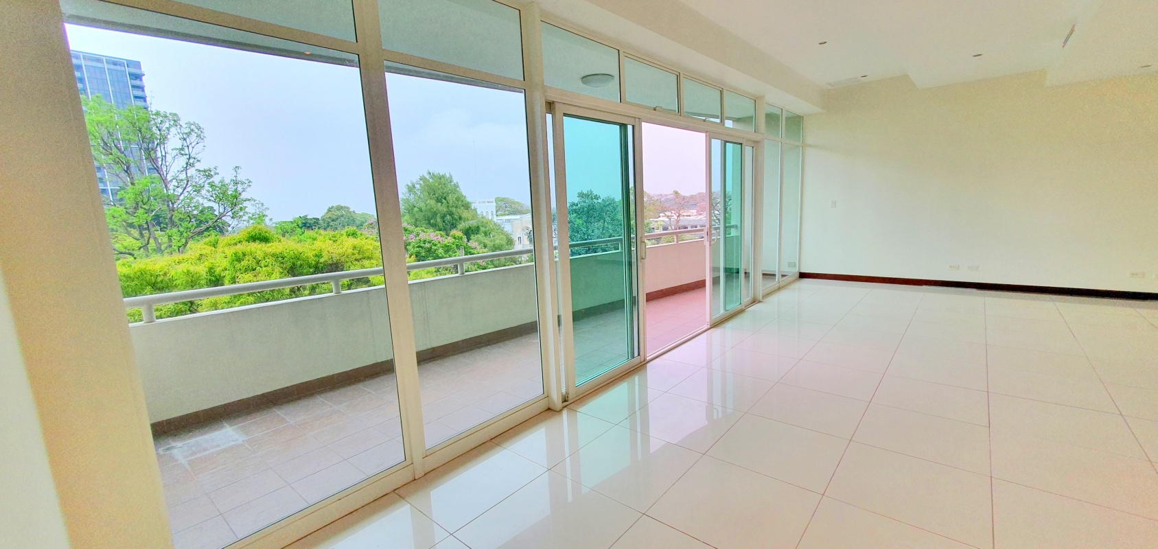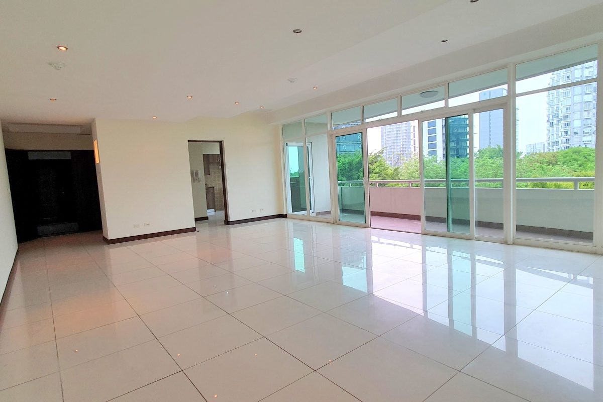 Clear and fresh dining-living room with a large balcony  that allows a great view of the park