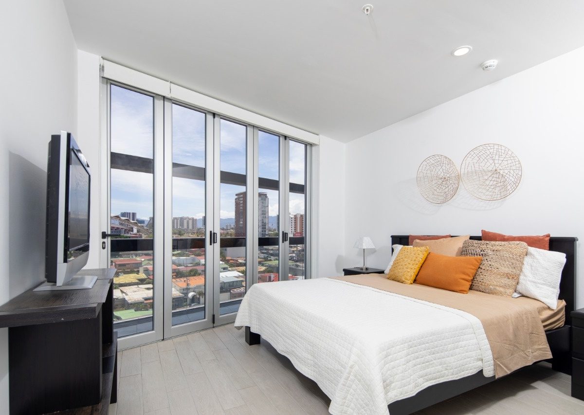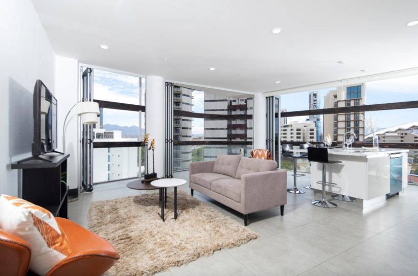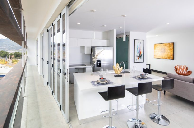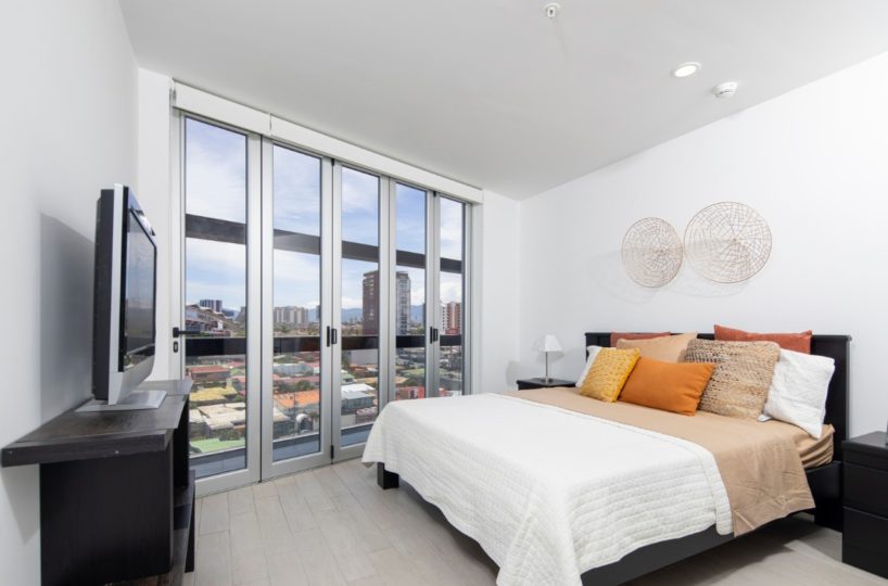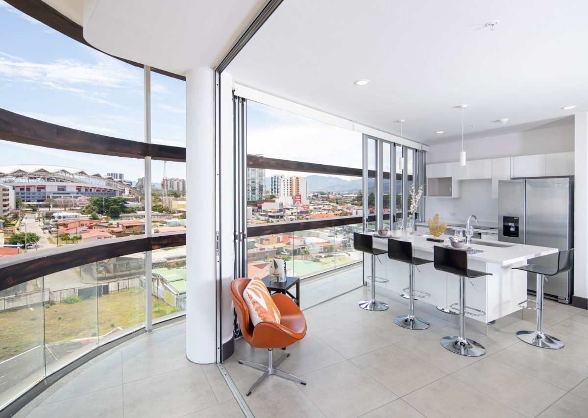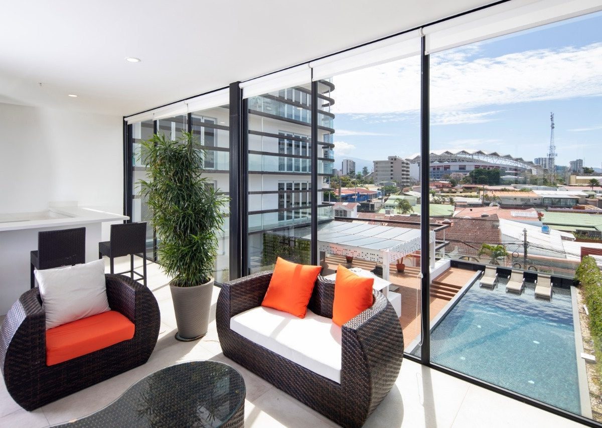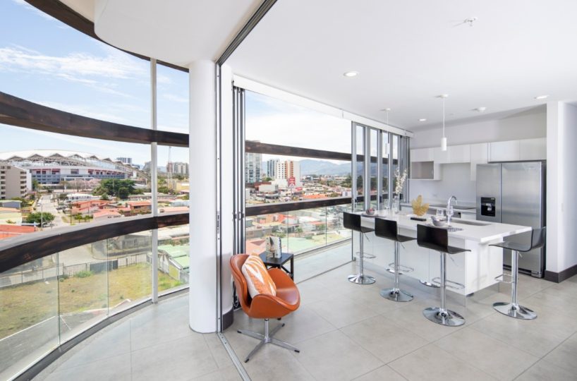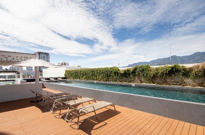 Beautiful and modern 8th floor apartment, located within a first class residential complex, strategically close to all services in the Nunciatura area in Rohrmoser, in a safe and quiet area. The condo offers an elegant lobby, swimming pool, gym, visitor´s parking and 24 hour security, among others. The modern design apartment has excellent lighting and natural ventilation. It has a beautiful balcony that ensures spectacular views.