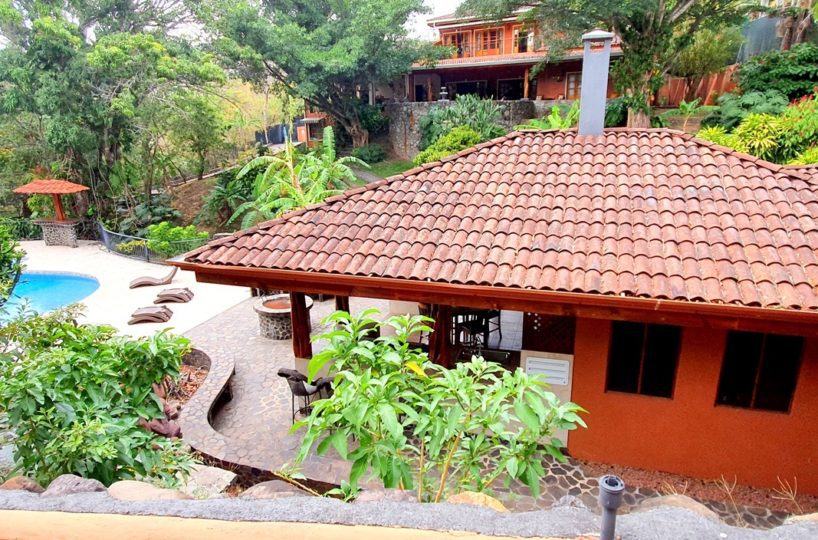 This beautiful 372m2 house is located within a 7,800m2 dream property, one of a kind, offering beautiful scenery, a gentle stream, waterfalls and breathtaking views. The house was completed in 2004 to the highest standards of construction and fine finishes. The property has in open areas, a construction of 80m2 with a beautiful wood and stone finish that also serves as a BBQ ranch, fully equipped with gas grill, refrigerator and 2 fireplaces, 6m2 cellar. It also has a refreshing 23,000 gallon pool that is the center of a small and peaceful oasis, 2 water retention tanks with a combined capacity of 5,000 liters, 3 septic tanks, and 2-2 car garages, and parking space for many more.
