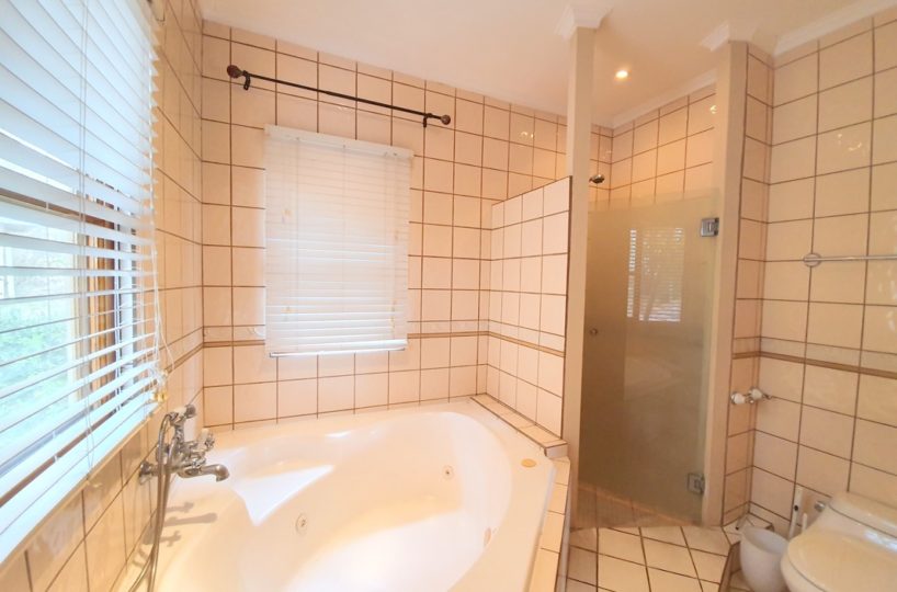 In total it has 4 large bedrooms with walk-in closets, 4.5 baths with tubs and showers, marble countertops, and cedar wood cabinets. The master has a jacuzzi.