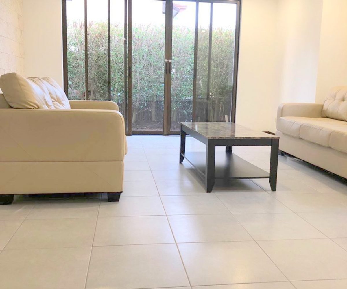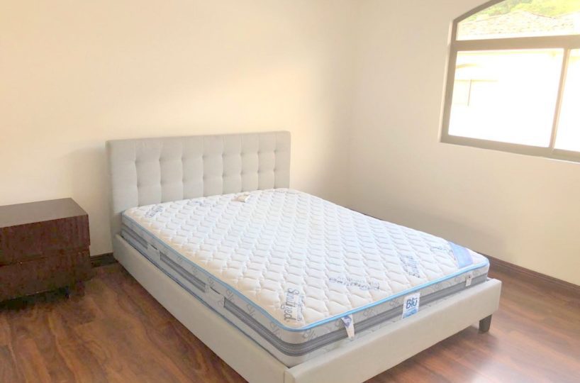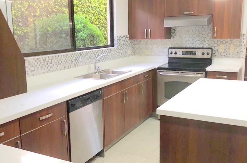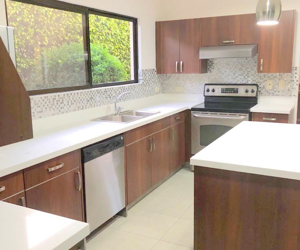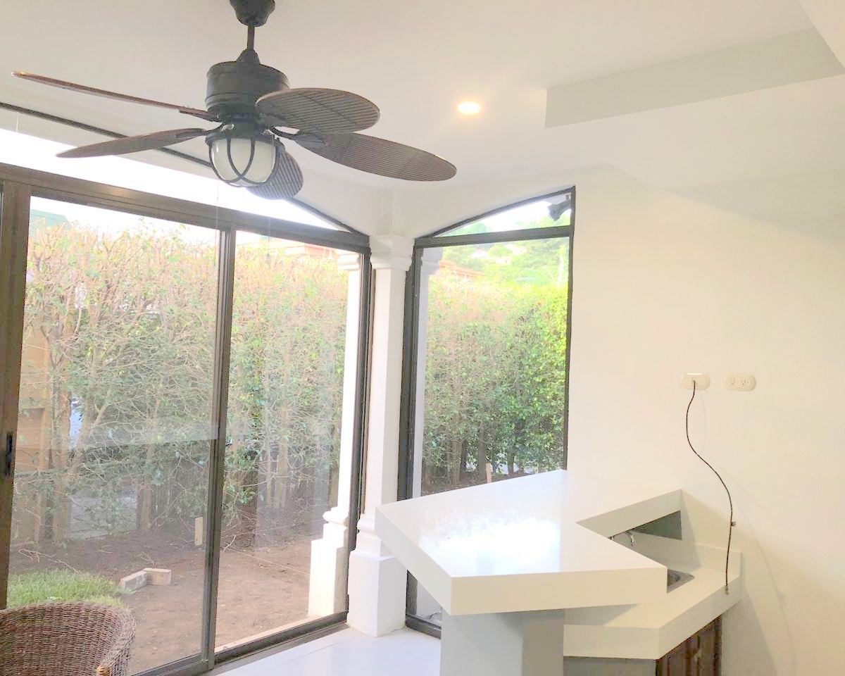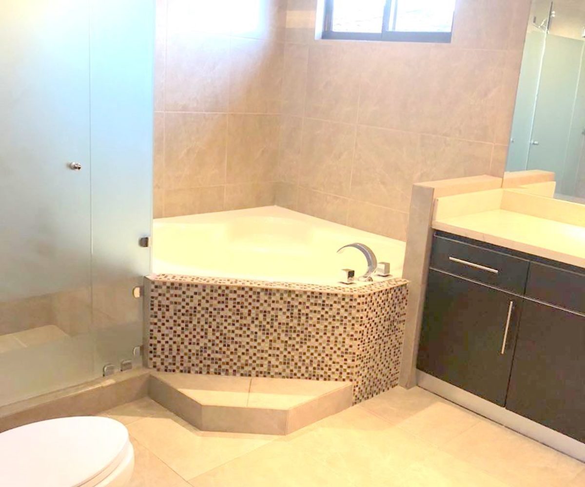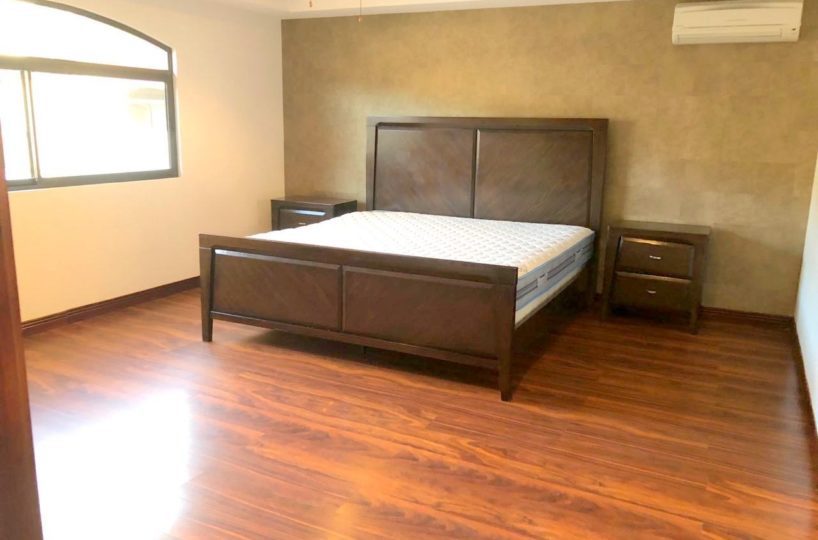 Elegant and spacious house in condominium located in Pozos, Santa Ana, close to all amenities and services. Lot of 290 m2 and construction of 275 m2, distributed in two floors. In the first level: Garage for 2 cars and cellar, maid´s quarters, laundry area and internal cellar, kitchen with island and pantry, large living and dining room, covered terrace with bar area, 1/2 bathroom for visitors, patio. On the second level: Master bedroom with walk-in closet and bathroom with shower and tub, 2 secondary bedrooms with full bathroom each, play area or office and TV room. The house also has a water collection tank, surge voltage suppressor to protect the appliances, air conditioning in rooms and living room, fans in rooms and room T.V. second level. The complex has a clubhouse, playground, 3 swimming pools, jacuzzi, and tennis court. FURNISHED RENT: $ 2.900
