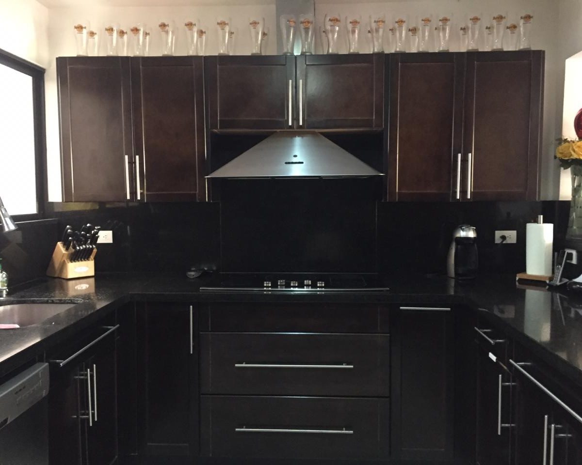 • Kitchen with complete furniture, granite countertop and backsplash, pantry, template, oven, microwave, extractor, refrigerator and dishwasher