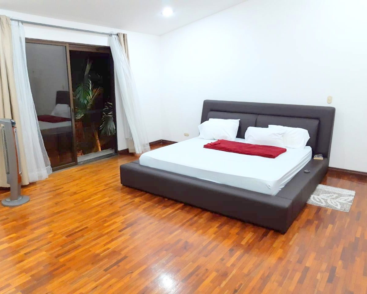 SECOND FLOOR: TV room, a master of extraordinary size. With balcony, walking closet, private bathroom.