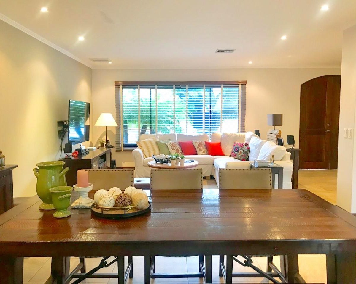 Description: BEAUTIFUL HOUSE IN A LUXURY CONDO. It is a beautiful house in a very distinguished condominium of Pozos, Santa Ana, with isolated houses one from the other. It has a lot of 360m2 and a construction on 2 floors of 300m2 approx. It has 3 large bedrooms, 2.5 bathrooms, T.V. Room. It has a large social area with a beautiful and modern integrated kitchen, pantry, laundry room and bathroom, laundry area and cellar. Additionally has garage for 2 cars under roof and additional parking spaces. It has a large terrace with BBQ area and a large garden. In addition the condominium offers in its common areas swimming pool, club house, tennis court and basket ball, 24 hour security, parking for visitors and beautiful green areas with a very good landscape and optimal state of conservation. The location is exceptional, not dams and extremely accessible to Route 27.