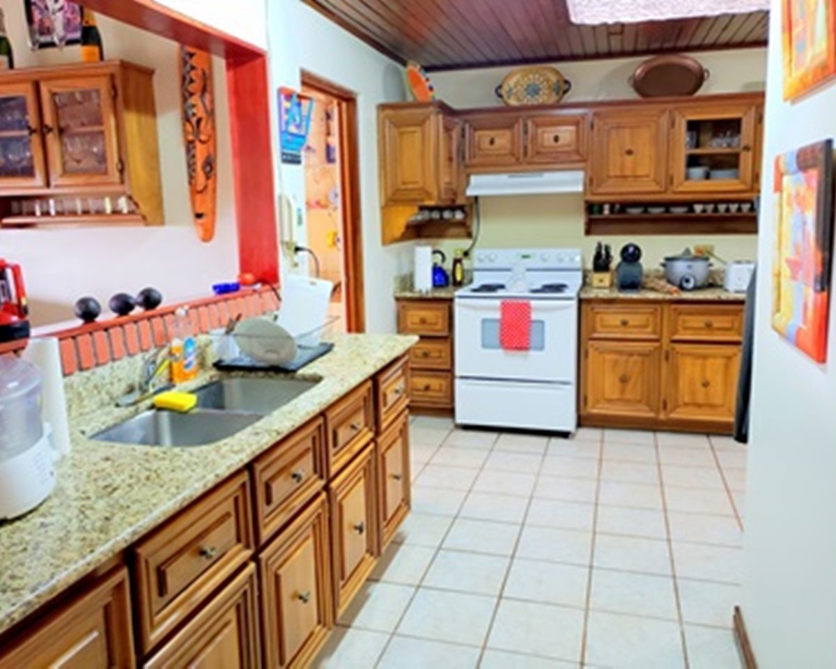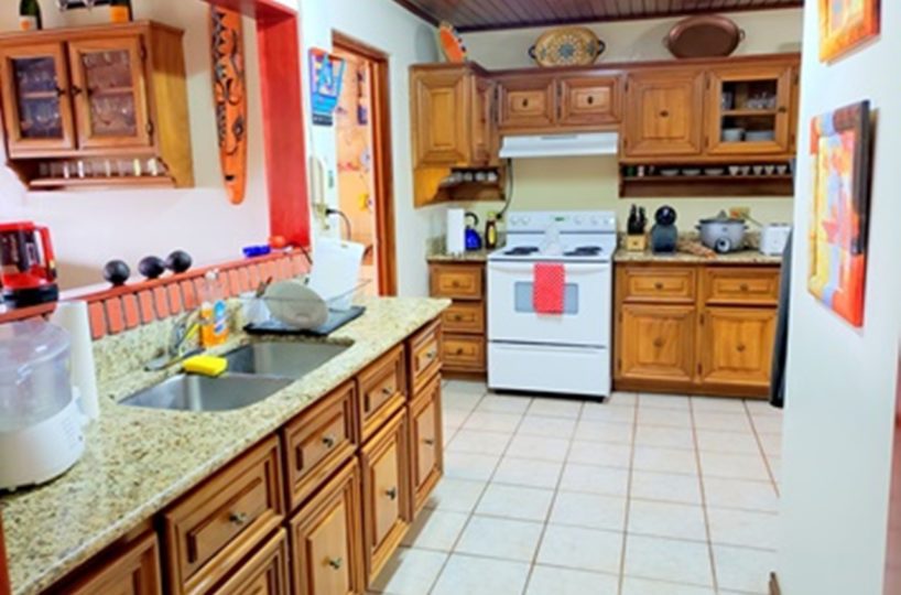 The large beautifully manicured garden includes a covered Rancho with furniture and propane gas and charcoal BBQ’s.  There is also a sink, cooking utensils and a table for 4. Inside the garden there is a birth bath that gives a lot of life to its surroundings and a welcome rest stop for beautiful tropical birds. There is also a storage room for paints, hardware tools, etc.