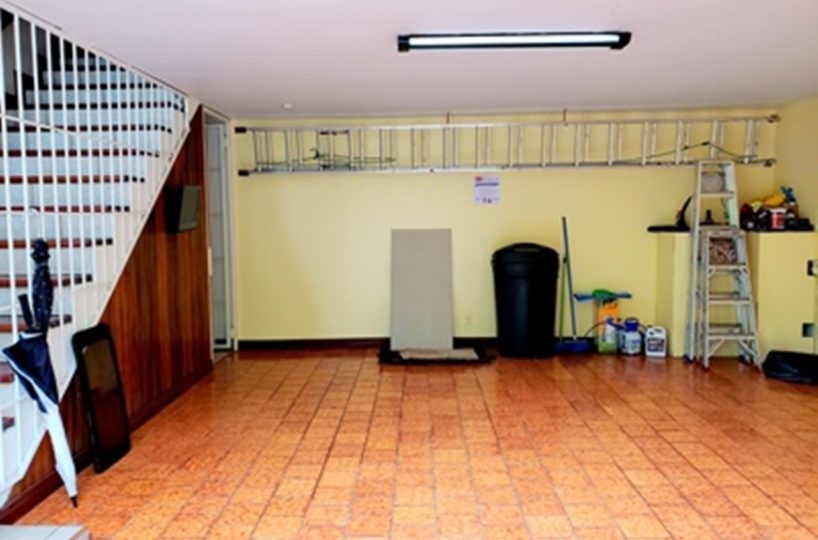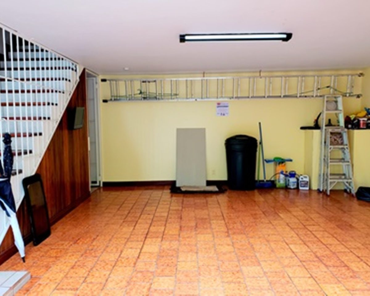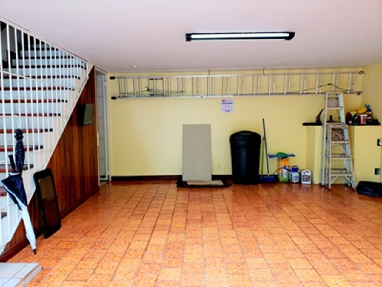 It has an elegant main entrance that leads a wooden staircase to the 2nd floor, where the principal living area is located. Downstairs, there is also a very spacious garage for 2 large cars and a very spacious bedroom with a full bathroom and a large walk in closet in the opposite wall.
