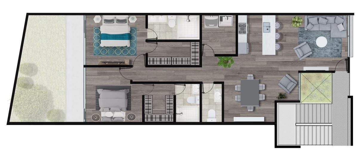 Beautiful 153m2 apartment, located inside a building in Rohrmoser, close to everything in a safe and quiet area. The apartment is modern in design, built with top quality materials. It offers a large, bright and fresh social area with an open concept kitchen that includes an island with a stove and furniture with granite countertops and half bath for guests. It also has a laundry area and indoor parking for two vehicles and a warehouse. Additionally It offers 2 comfortable bedrooms and 2 full bathrooms.