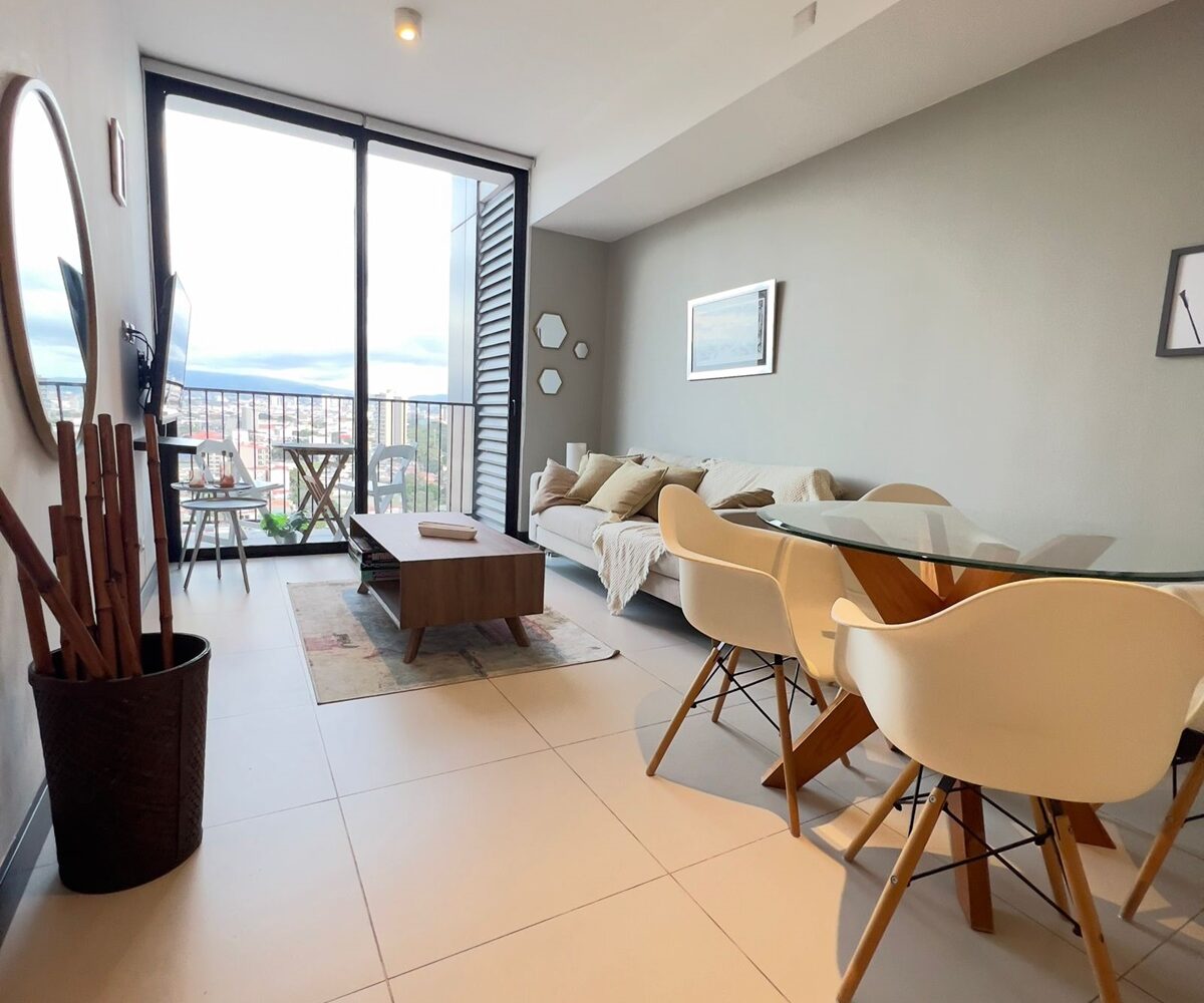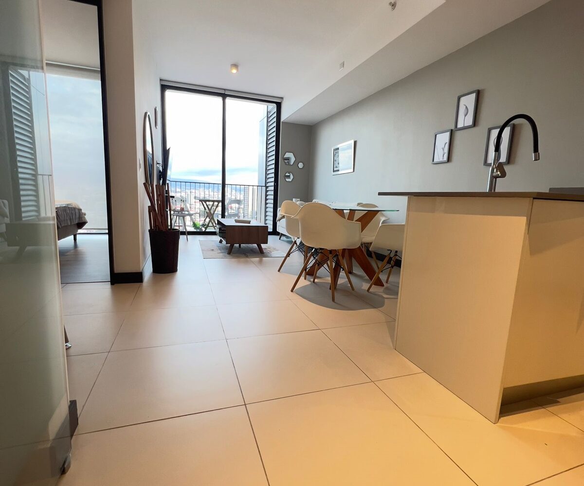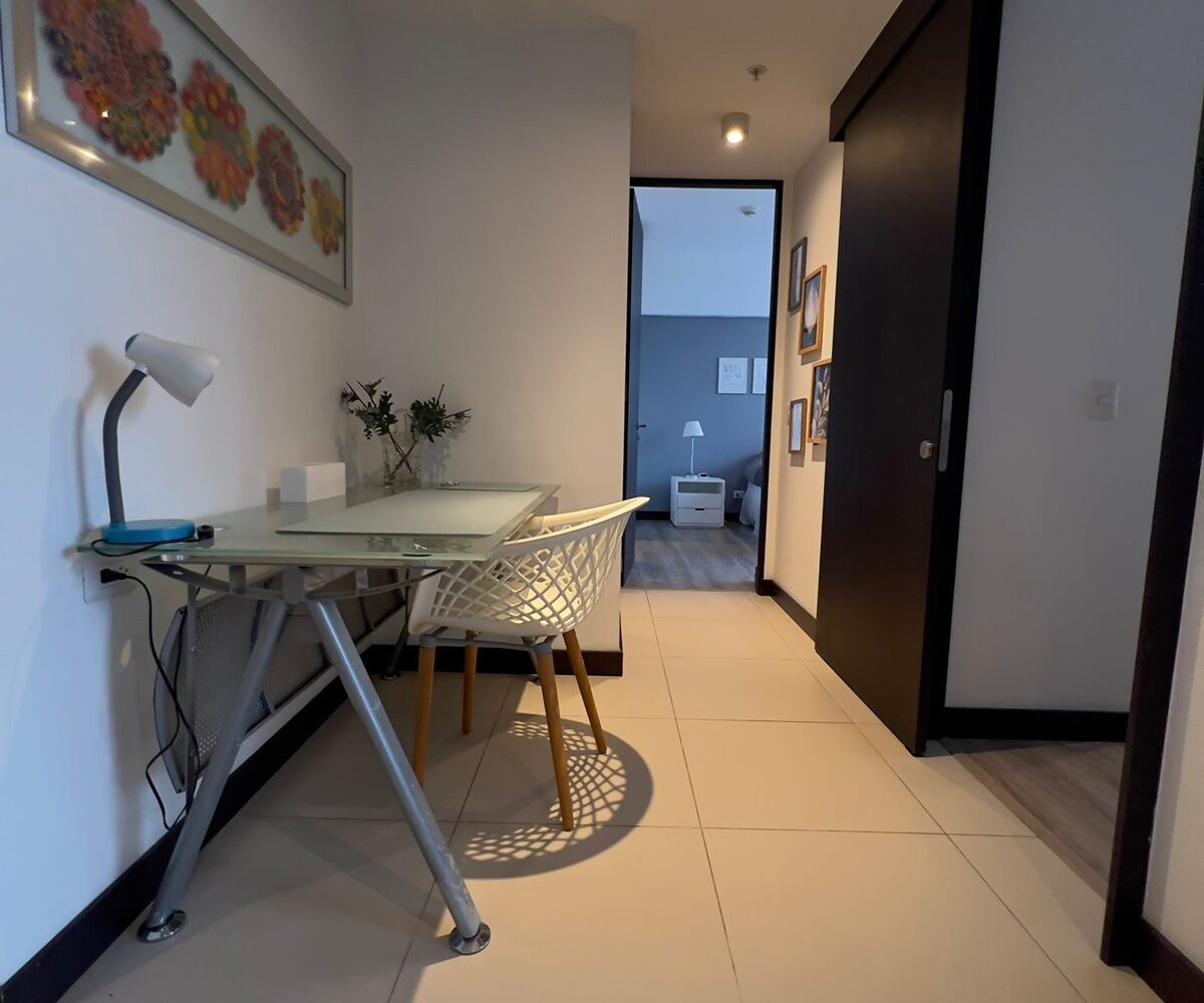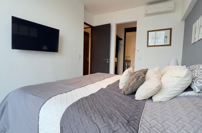The apartment offers a lot of natural light and freshness. It has a cozzy living- dining room with large windows and a fully equipped open concept kitchen, laundry area with washer and dryer and parking for two cars. In addition, it has 2 comfortable bedrooms, and two full bathrooms, a TV room. and office. The apartment is rented completely and includes the cost of maintenance.