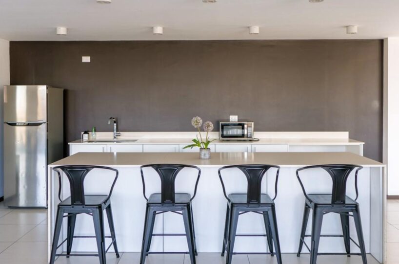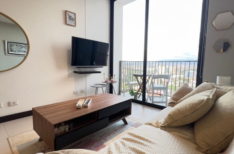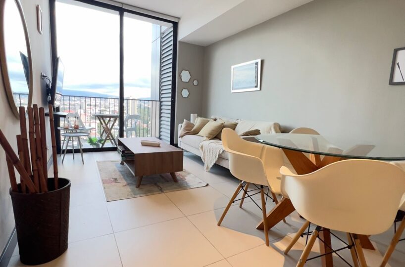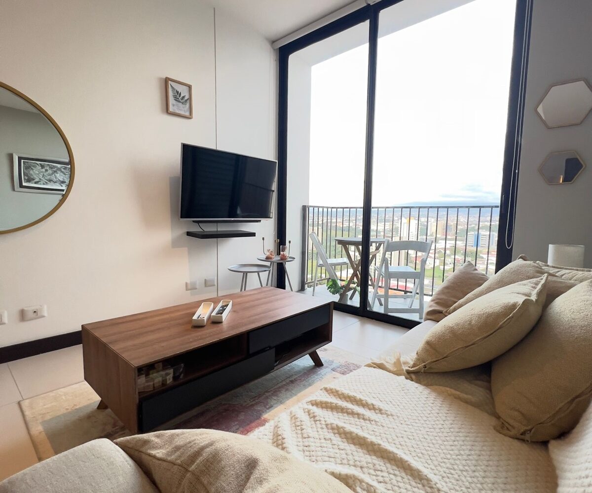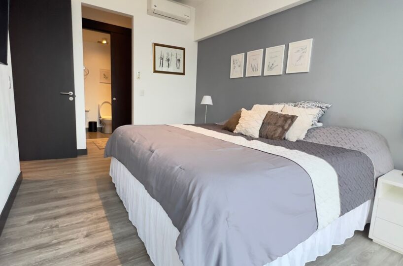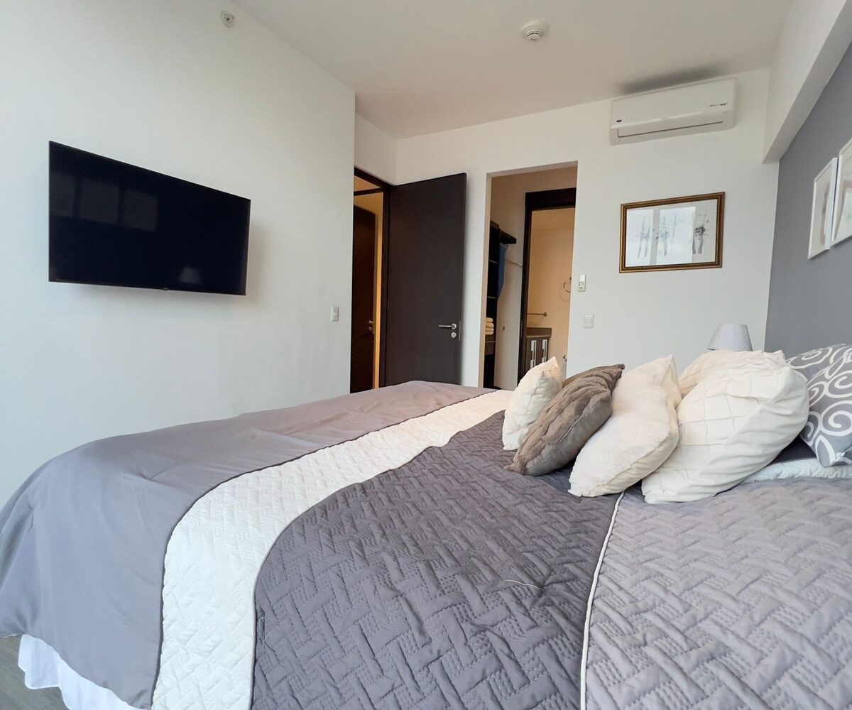 The apartment offers a lot of natural light and freshness. It has a cozzy living- dining room with large windows and a fully equipped open concept kitchen, laundry area with washer and dryer and parking for two cars. In addition, it has 2 comfortable bedrooms, and two full bathrooms, a TV room. and office. The apartment is rented completely and includes the cost of maintenance.