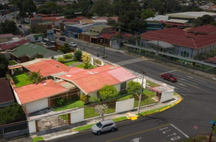 Large corner lot of 1,080m2 with an ample house, located in San Antonio, Desamparados in front of the public school and bus stops, with a large influx of people and vehicles. Due to its strategic location, it is suitable for developing any type of business, whether housing or commercial projects. The property has mixed land use permits (70%, 756m2 to build).