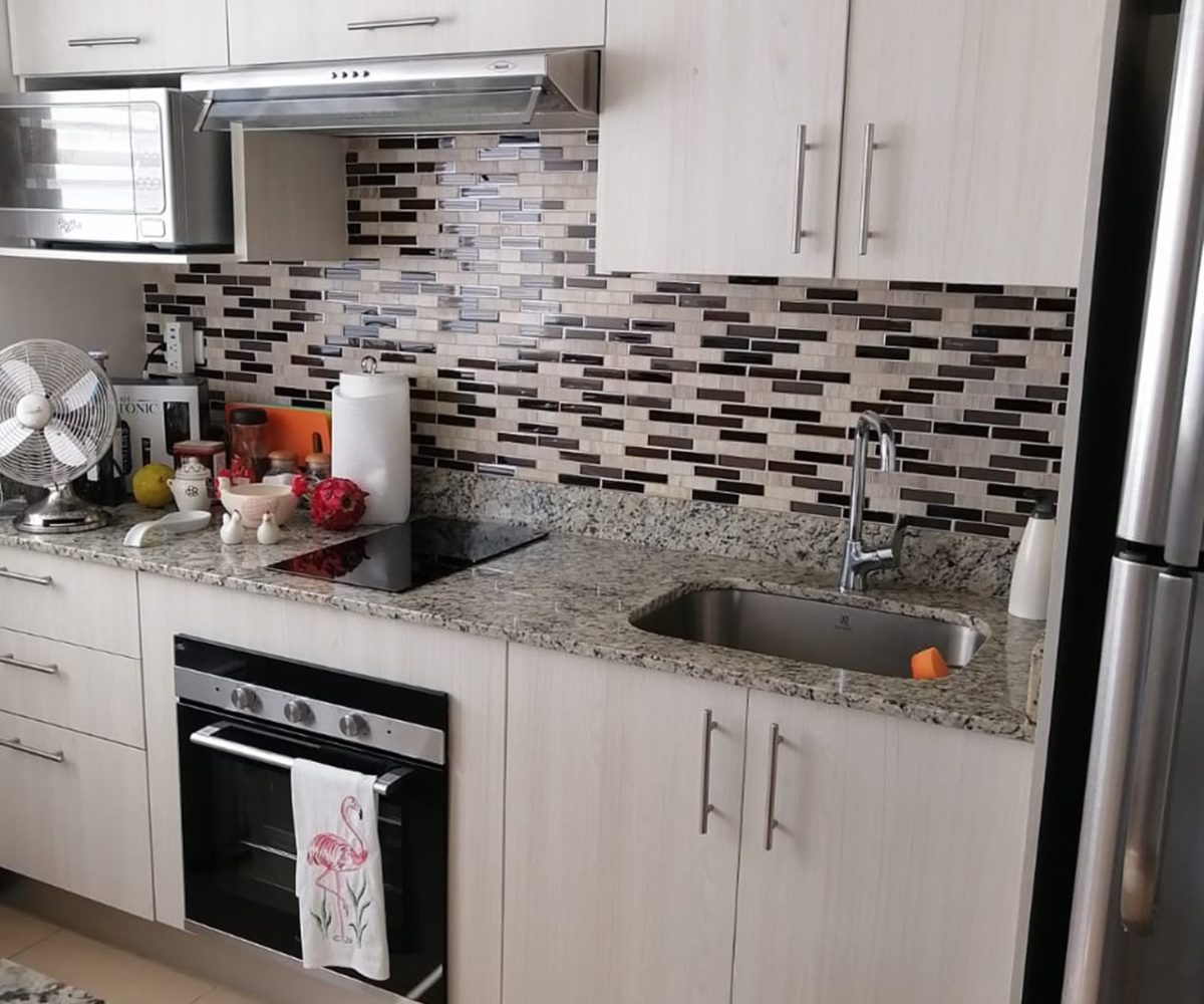 87m2 apartment on the first floor with a terrace with an excellent view. It has clear and fresh social area with an open concept kitchen, laundry area, 2 bedrooms and 2 full bathrooms, one in the master bedroom. It also has parking for two vehicles.