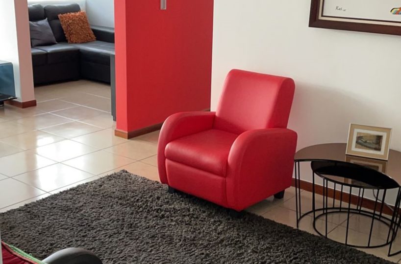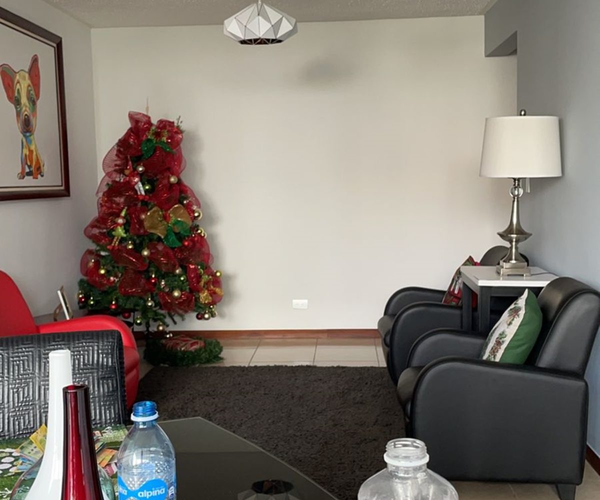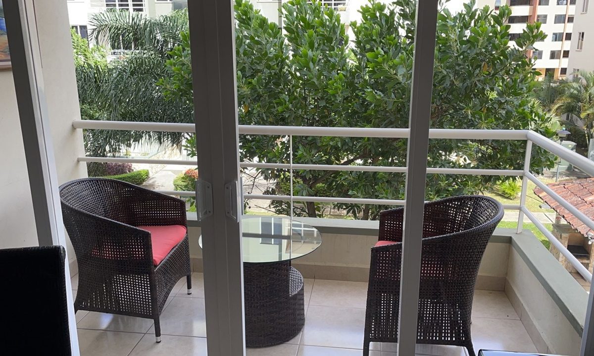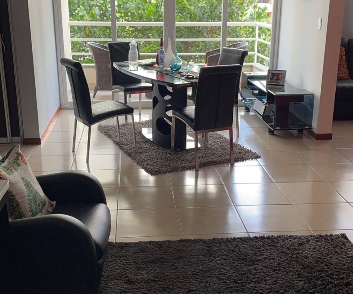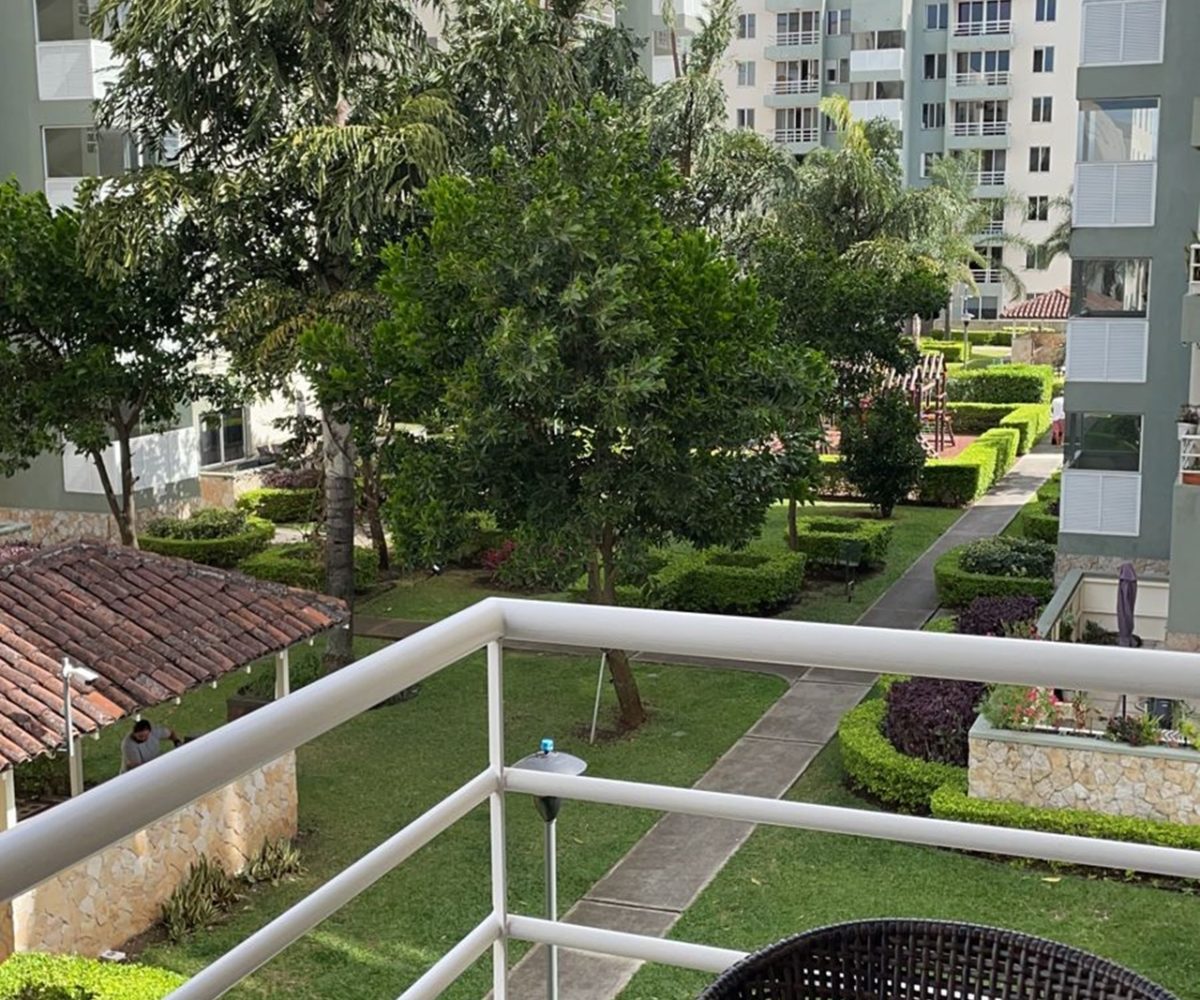 Beautiful apartment, 104m2, located on the third floor of a housing complex located in San Rafael de Alajuela. Due to its location within the condominium, it offers an impressive view from its balcony. It has a social area with large windows allowing plenty of natural light and freshness, as well as an open-concept kitchen with a breakfast area and storage furniture. Additionally, it has a laundry area, 1 parking lot, 2 comfortable bedrooms, 2 bathrooms and a TV room, among other facilities.
