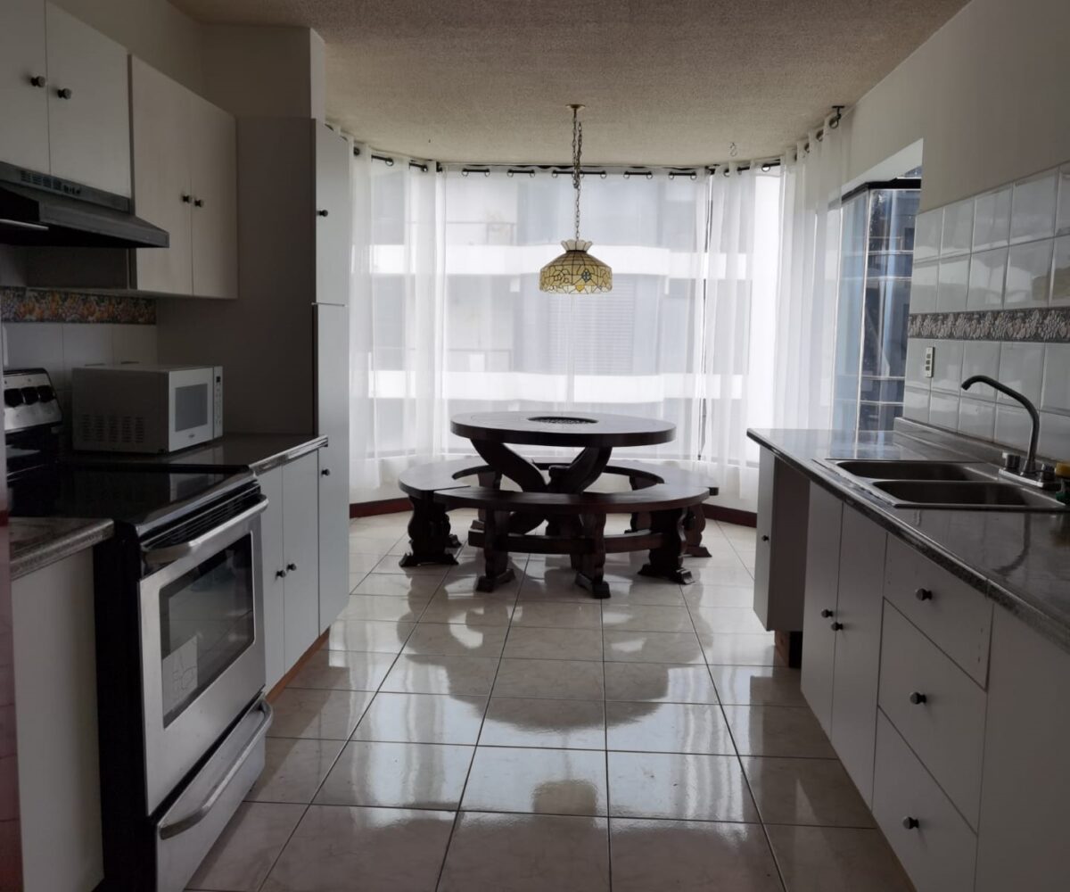 Spacious and elegant apartment with a construction area of ​​217m2. It is located on the fourth floor of a luxury housing complex in the vicinity of Residencial Los Laureles in Escazu, close to all amenities and services, in a quiet and safe area.