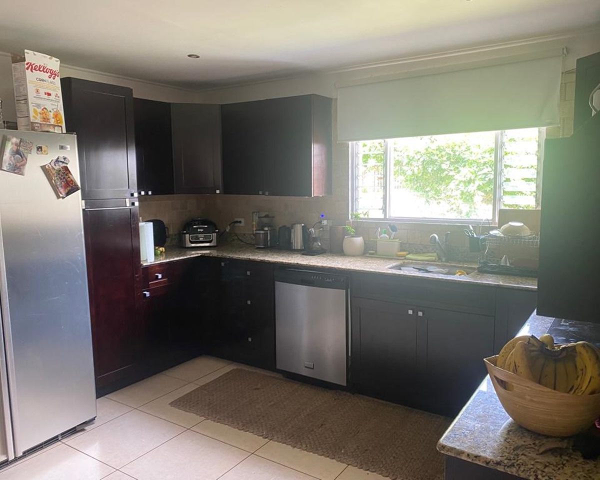 It has a social area with a large living and dining room and an additional living room, separate kitchen with furniture and plenty of storage space, maid’s quarters, laundry area and parking space for 10 cars. In addition, it has 4 comfortable bedrooms and 3 full bathrooms.