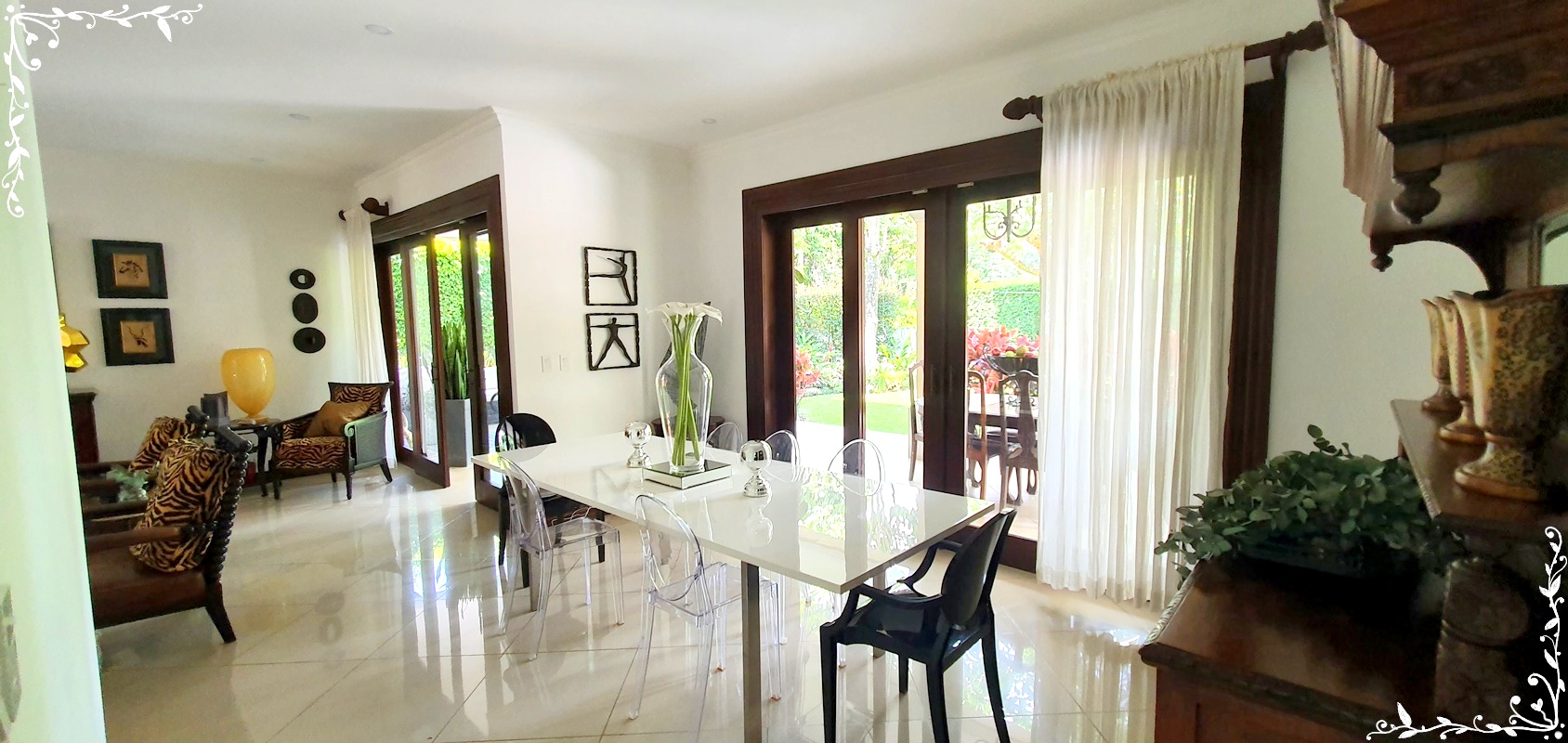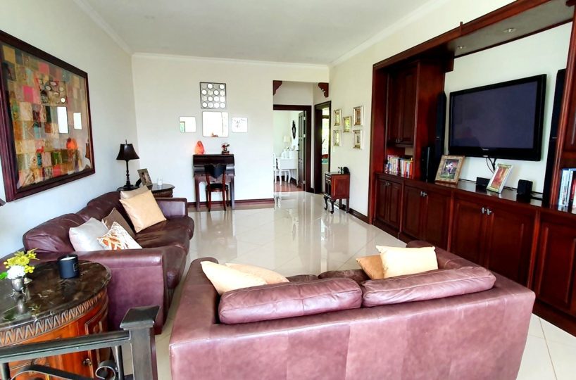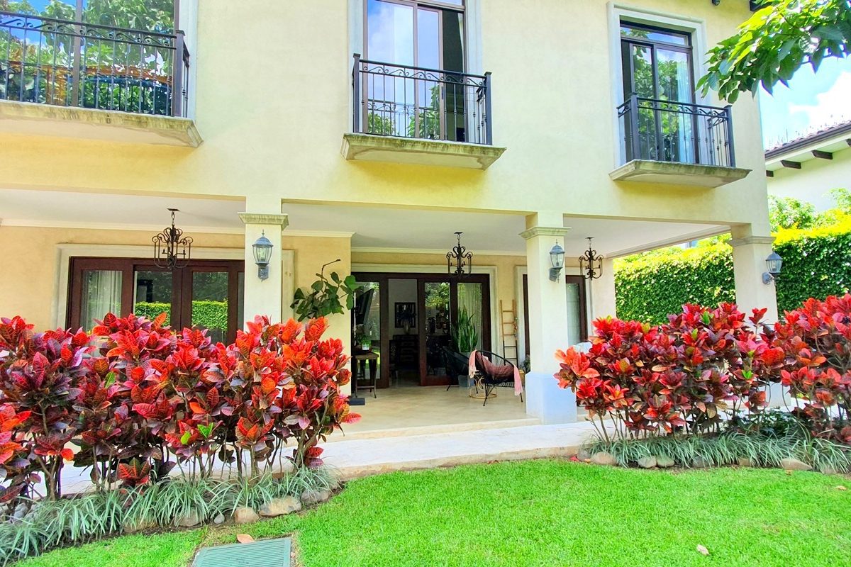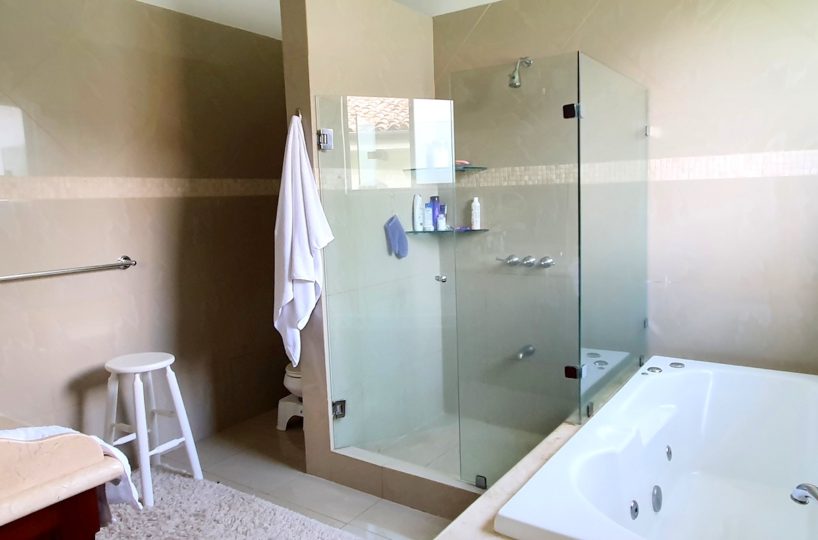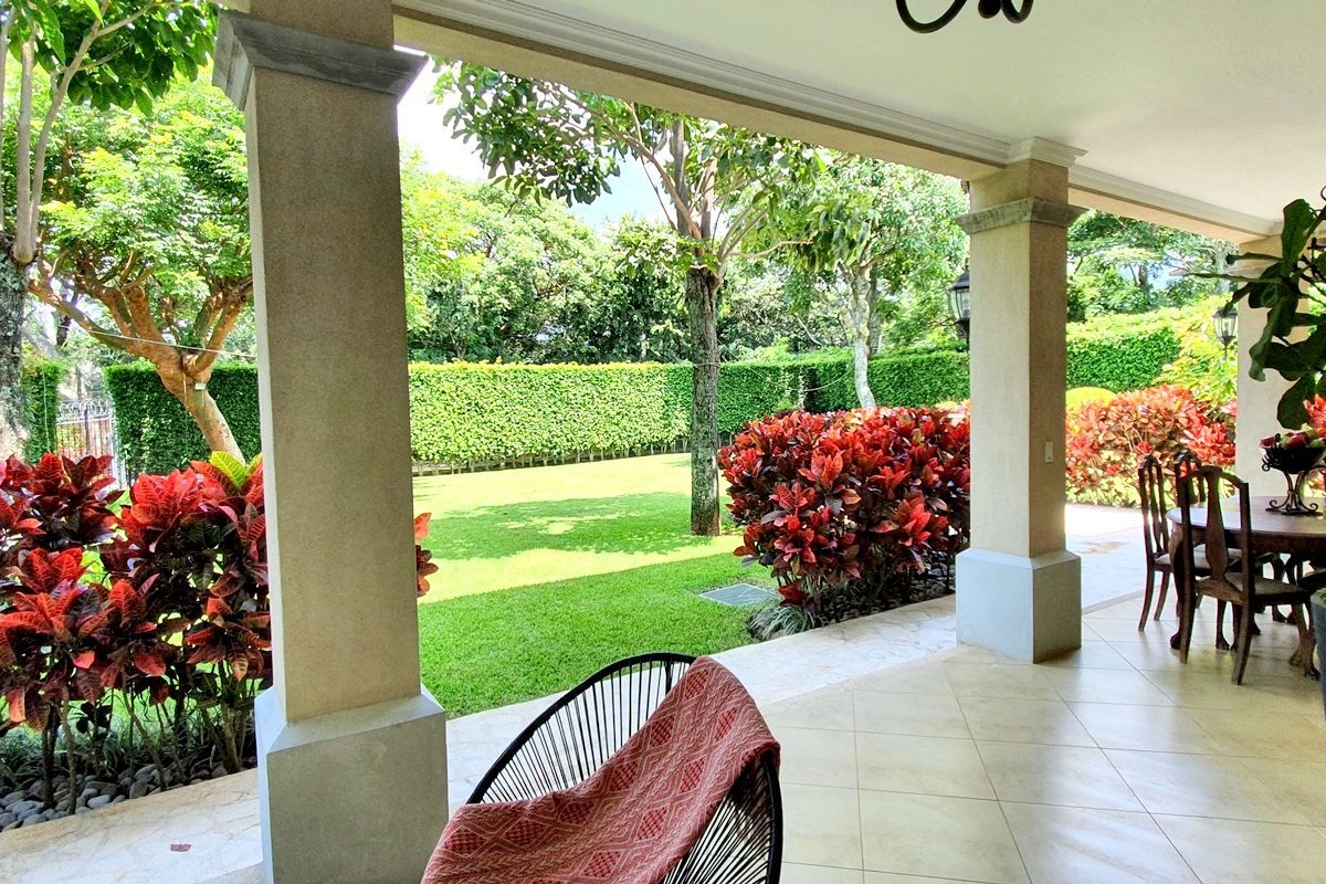 2 story house with 4 bedrooms. Master and 1 more with its private bath. Other 2 share a bath. Bath for visitors. Is a gorgeus social area … living, dinning, terrace. Huge garden with trees and pretty flowers and plants.