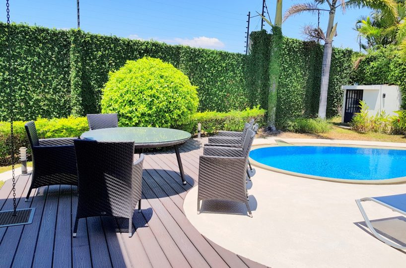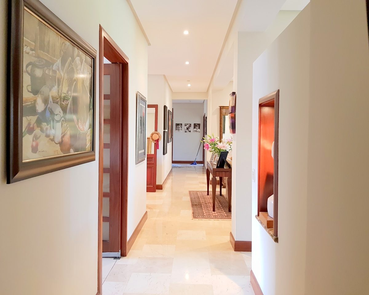 It is a spectacular house, within an exclusive condominium in the Santa Ana area. It has 892m2 of land and 400m2 of construction, distributed on 1 floor. The house has a beautiful garden and private pool. The residence features an excellent distribution: In the social area it has a large living room and independent kitchen with dining room, guest bathroom, a large terrace with several environments. It has three comfortable bedrooms and an area that can be converted into a fourth bedroom. The master bedroom with walk-in closet and bathroom. The other bedrooms share 1 bathroom. In the service area has maid´s quarters, laundry and indoor garage for two cars with parking for 2 additional. The condo has several amenities such as: pool, clubhouse, tennis courts, football and basketball, playground, 24 hour security, parking for visitors, among others.