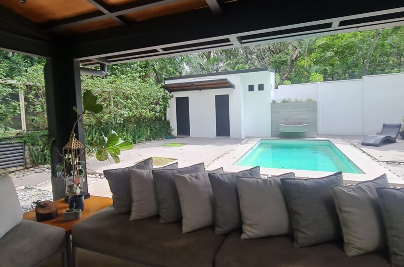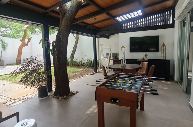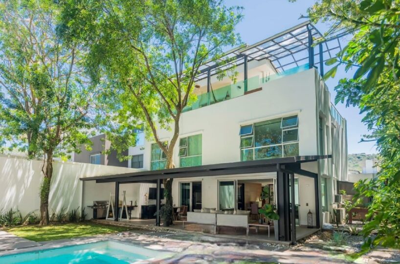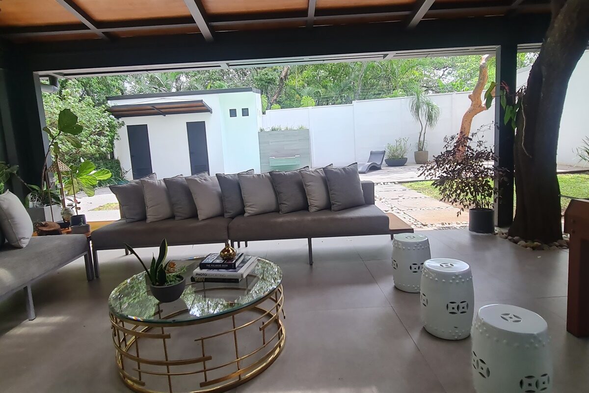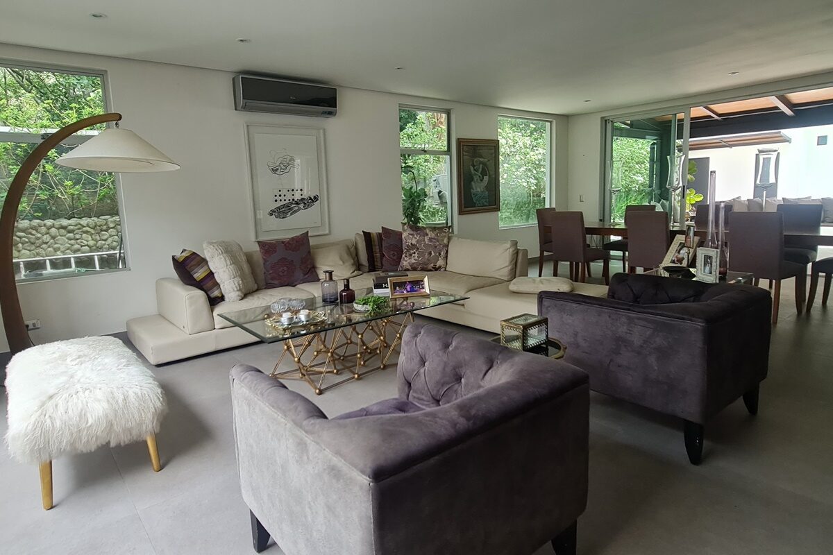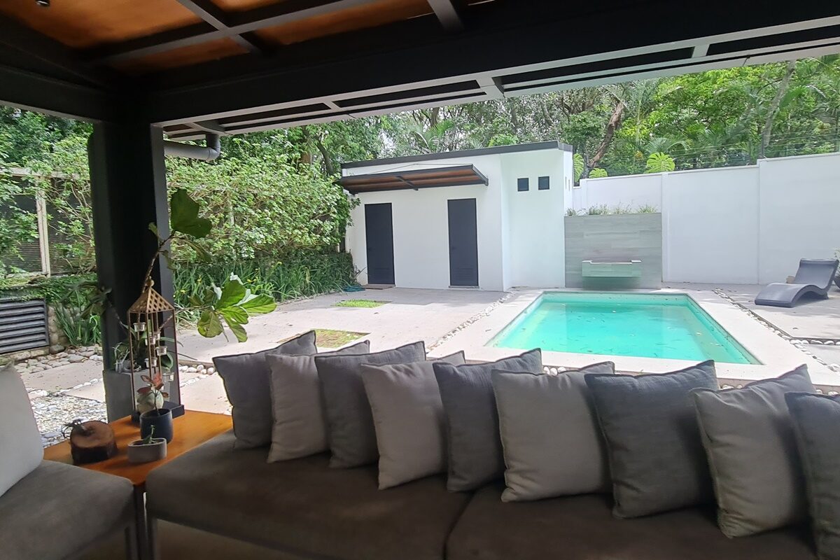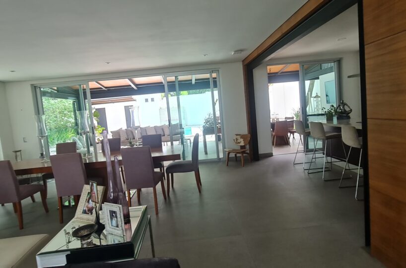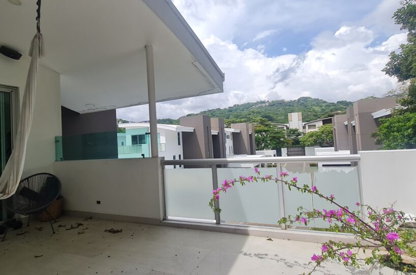 Beautiful and elegant corner residence with only one neighbor, adjacent to a green area with a beautiful grove of trees. It has 3 levels optimally distributed for better use of spaces and is located within an exclusive condominium in Santa Ana, close to all amenities and services, without losing your privacy and security. Its strategic location allows easy access from various routes.