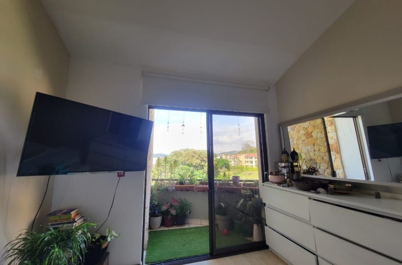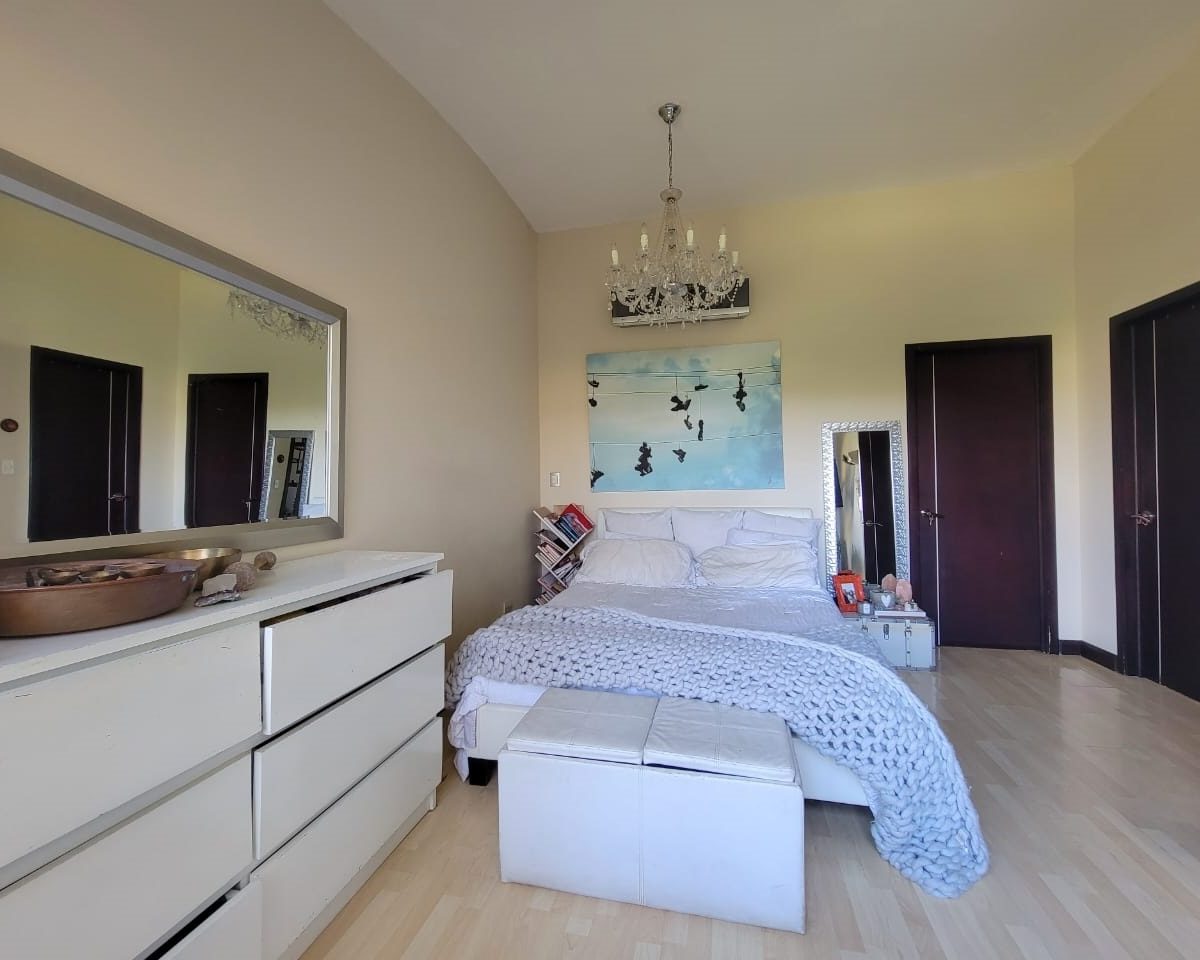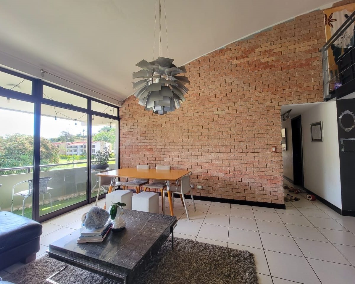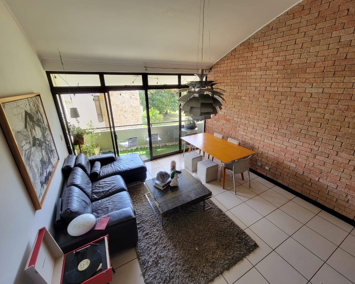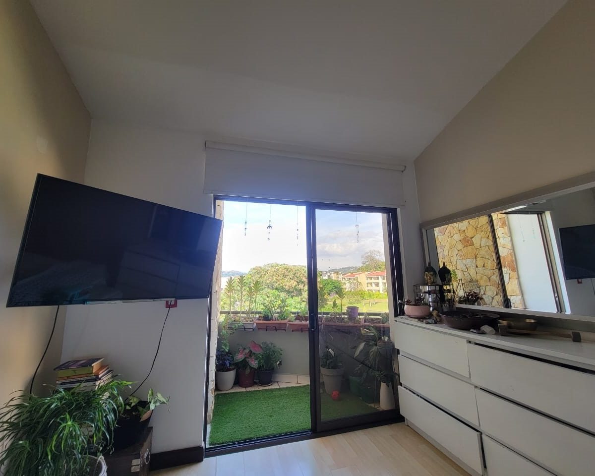 This apartment is located within a beautiful housing complex located in Santa Ana, close to all amenities, services and transportation, but without neglecting the tranquility, security and comfort. The apartment has a construction area of 101m2, optimally distributed on one floor, for better use of space and a beautiful view of the lake; also has two mezzanines. It has a comfortable and clear social area with access to the balcony and open concept kitchen with furniture, granite countertops and breakfast bar, as well as laundry area. It has 3 bedrooms, the master with walk-in closet and full 2 bathrooms. It also has a beautiful balcony, indoor parking for two vehicles and a cellar. Appliances are included.