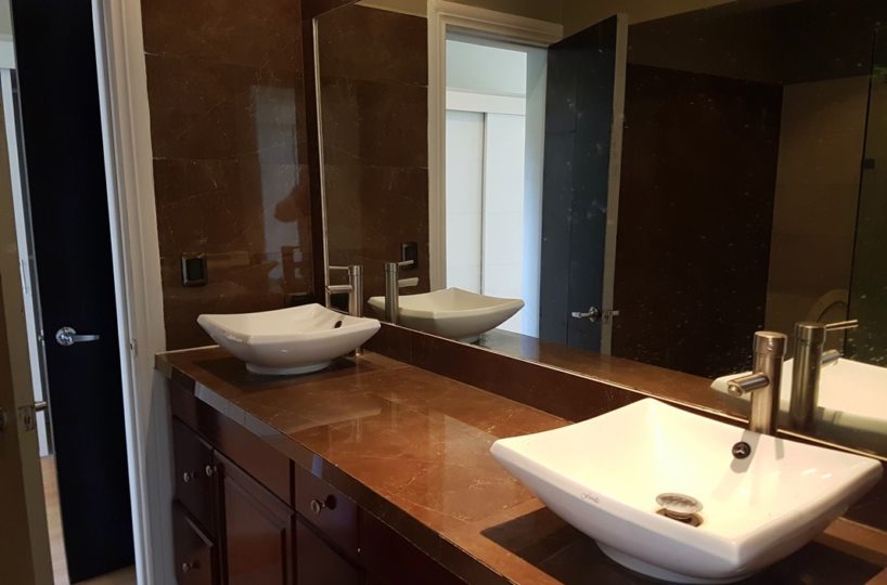 In total it has 4 bedrooms, 4.5 bathrooms and a utility room. On the first floor there are two spacious suites with walk-in closets and private bathrooms that feature bathtubs and showers, marble countertops and cedar wood cabinets and up the stairs, there is a landing that gives access to two more bedrooms, including the master bedroom, It has its own large balcony, walk-in closet, and master bath offering a double vanity with marble top and hardwood cabinets, followed by the shower and separate jetted tub.