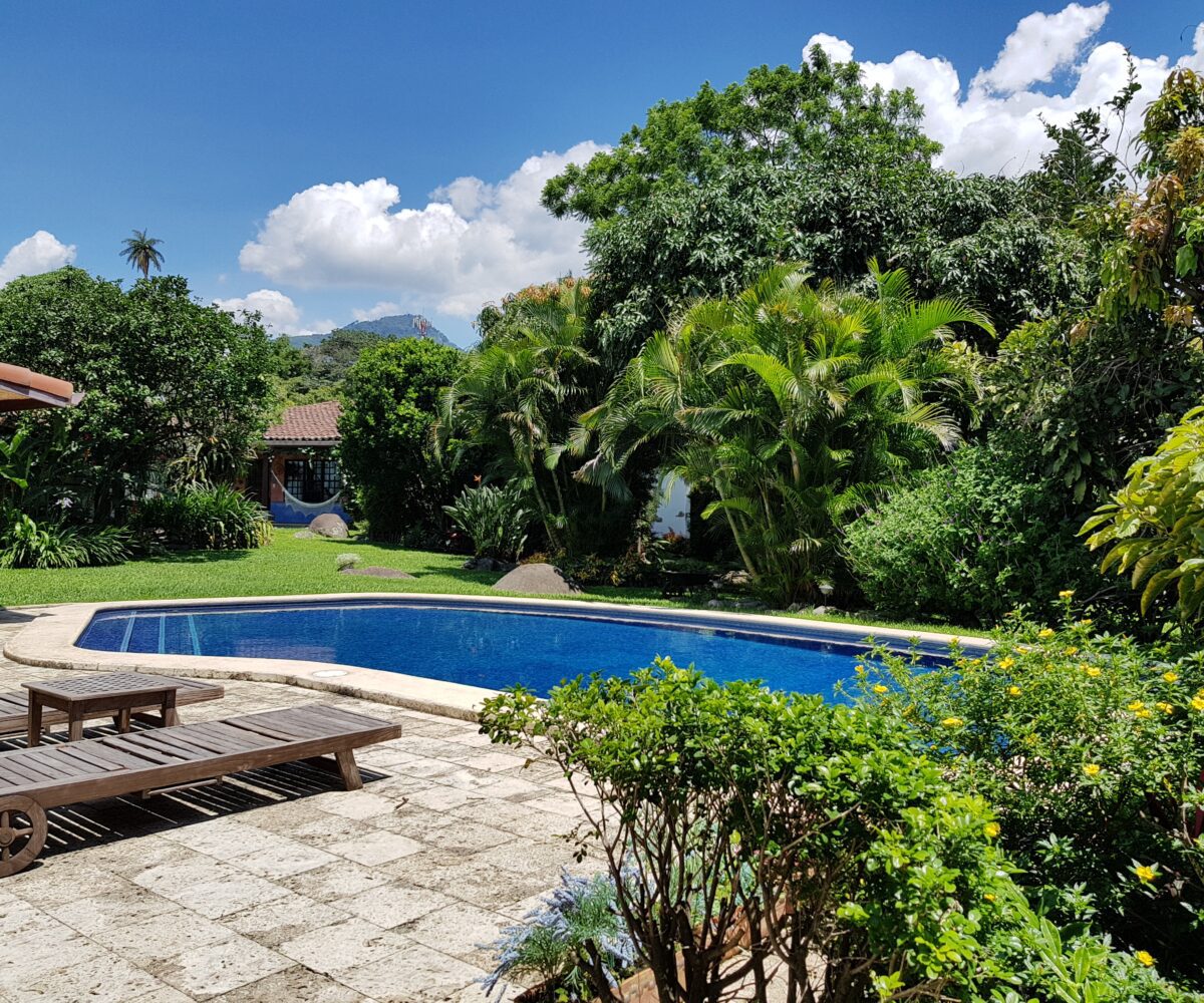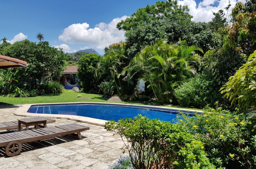 The property has: – One-story main house, which opens to a beautiful pool, with sundeck and dressing area.